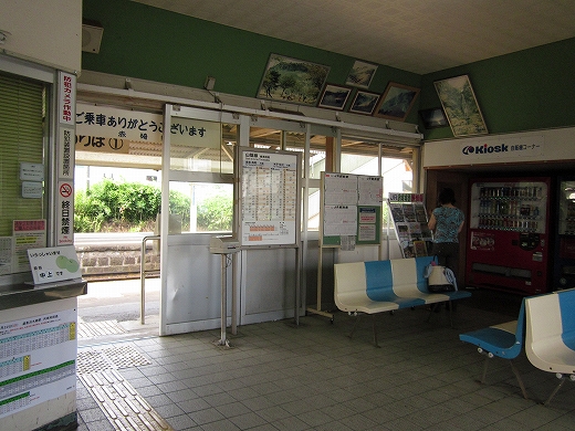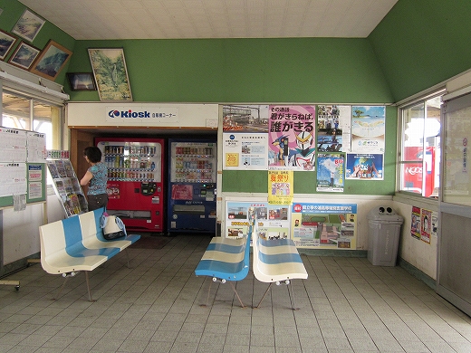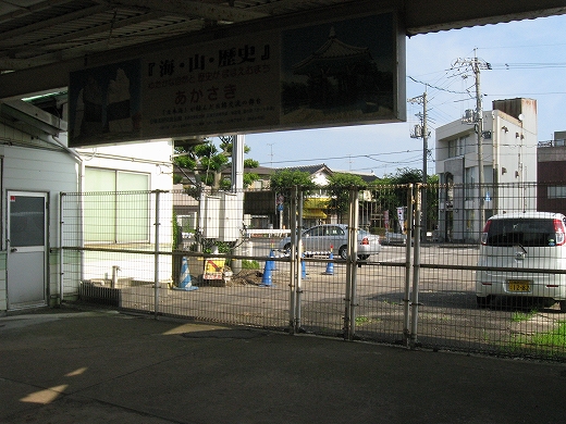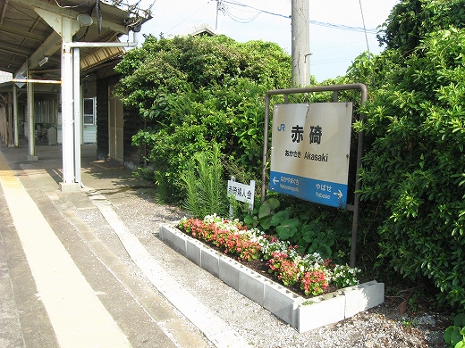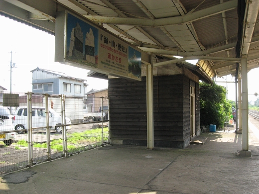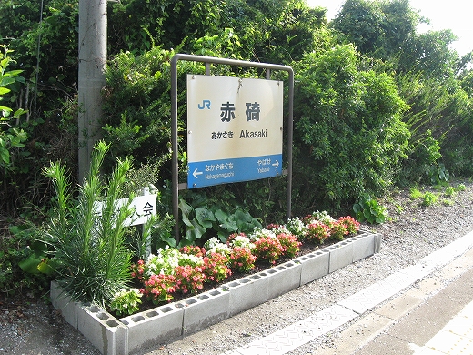 何々の町、赤崎、という写真入りの吊り下げられた看板の下から、また涼風が入ってきた。そこは旧小手荷物通路だったのだった。 すると、忙しくなる前の朝の駅の一瞬を思い出した。 ここはどんな町なのだろうな。そんなことばっかり考えて、駅旅してる。もっとも、どこだってたいてい秀抜なものはないさ。けれど初めての町のはじめの一歩にいつもいるこの想像する楽しみと期待感、これは堪えられないものだった。 しかし休んでいると少しくらっと気分が悪くなった。家いるときのようには食べてないし、駅寝で二日目だからだった。けれどこの悪心でさえ夏の山陰にいるということにほかならなくもあると思うと、急に元気が湧いた。赤碕という地名。またあおつらえ向きにも海っぽい地名だ。漁師たちが目印にした茶色っぽい岩が、この町の海にあったのだろうか。そして赤はまた、なんか山陰に似合うところがあった。