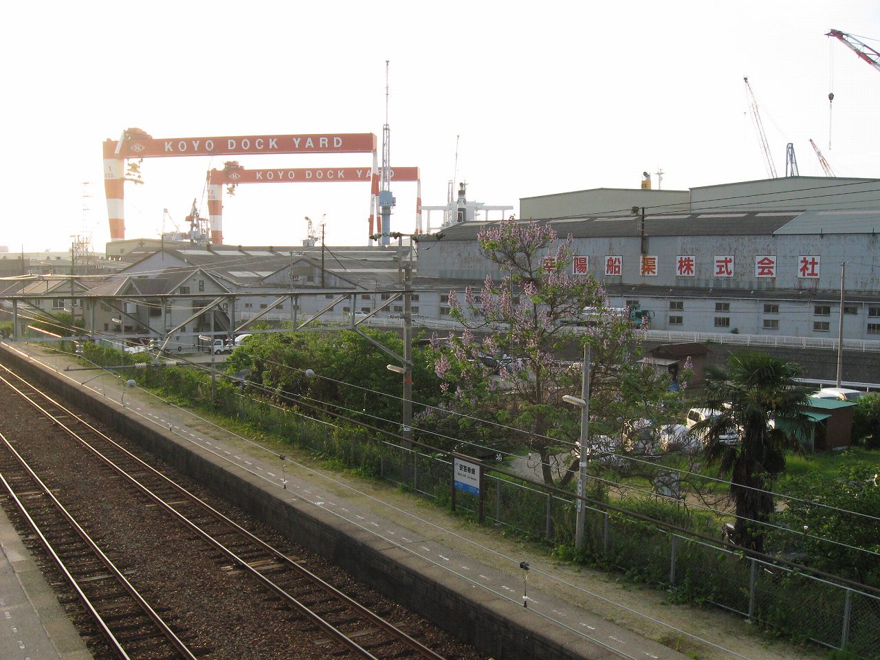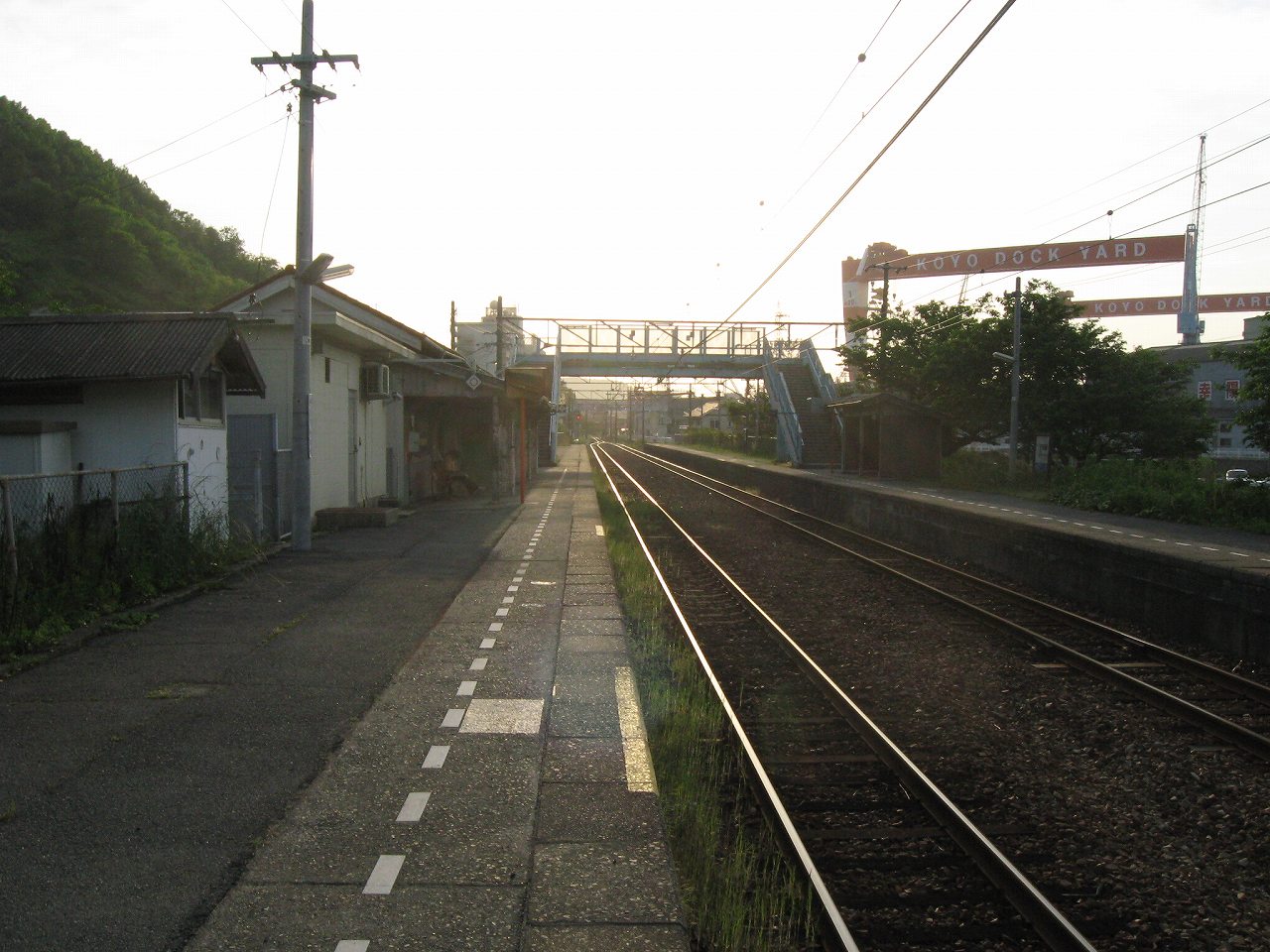 始発だから人も少なく、列車が遠くのほんとに短いトンネルをくぐって去っていくころ、僕は初夏のさわやかな海辺の空気を凛と感じつつ、灰白質なコンクリート舗装に白線が美しくまっすぐに引かれたホームを眺めやった。おあつらえ向きにも裏手には造船上のドックが控えている。それは広島の瀬戸内といった感じで、どこか素直だった。