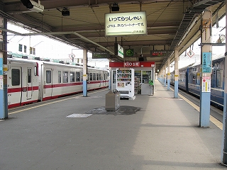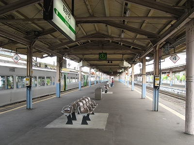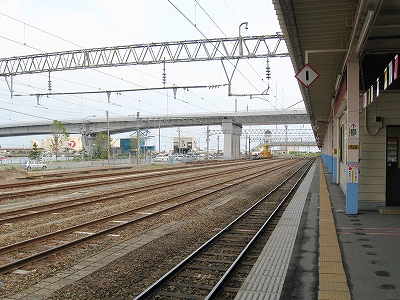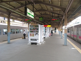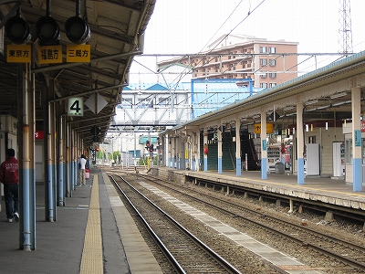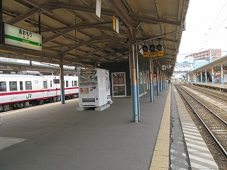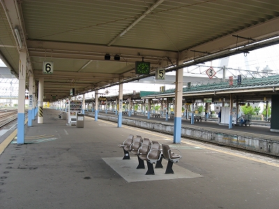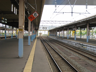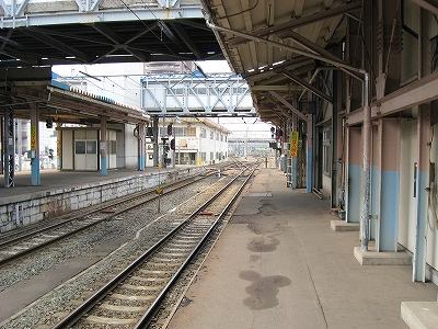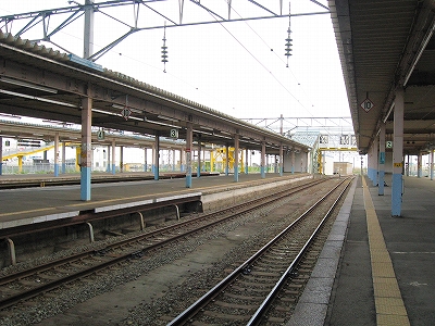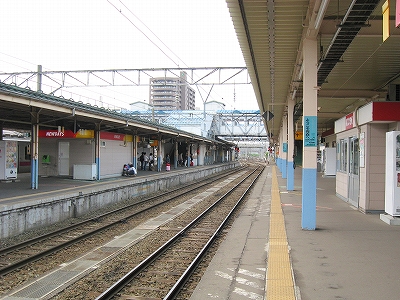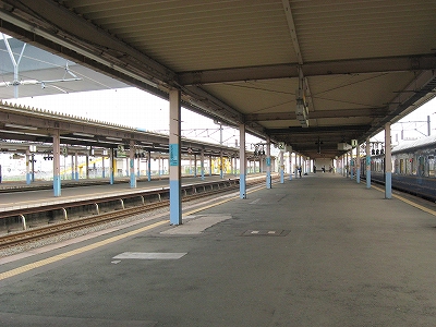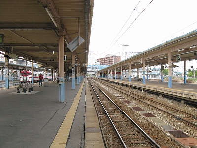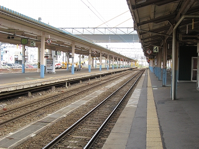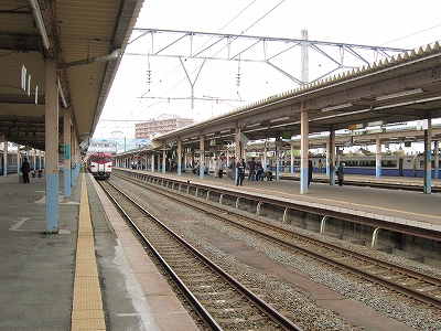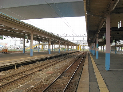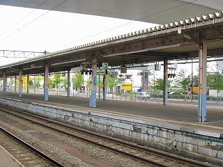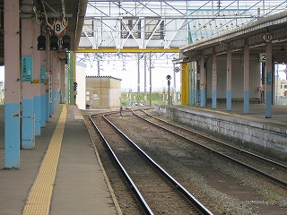 5・4番線。水色トタン、緑色トタン、赤色の列車が停まることもあり、