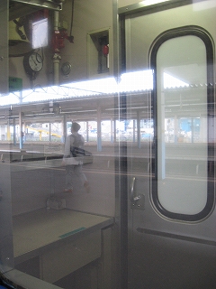 黄緑の白鳥が入って来た。高校生の中には撮影した人もいた。あの当時は、デジタルカメラなんかなかったな…そう物思いに耽る間もなく、目の前に片扉が来る。両開きでないところが、いつもと違うところ。しかしドアが一向に開かない。はっと気づいて、ボタンを押す。ようやく、私の後ろの長い列が動き出す。第一の失態に焦る。そしてデッキから客室に入るドアを開けようとするが、なんと、取っ手がない。これ、どういうこと?って、トカゲのように粘着力もたせて平らな手で開けようとするが、開かない。みんな待ってるのに、焦りまくる。すると、タッチするだけでいいのに気付き、叩きつけるようにタッチする。ようやく客室へ入り、私はさっさと奥まで行く。後ろがつかえないようにするために。すると後ろにいた客の列は椅子取りのため急にほぐれ出し、戦闘になった。私は悠々と構えて椅子取りに頓着しないふうを装っていただけに、不意打ちを食らった。それでもなんとか平静を維持し、後ろのおっさんがやっているように、座席を回転させるも、本心はあわてていたことが露呈したようで、回転レバーを、掌で押して、回していた。ふつう、足で押すんだ、足で。なんという失態を。
