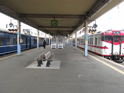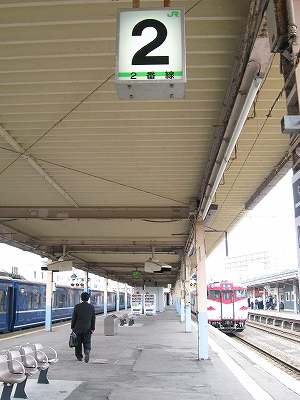8時半過ぎのホームは、まだ通勤通学の人たちが気難しい顔をして冷たい空気の中突っ立っていたが、それは別のホームで、まるで旅行者とかちあわないようになっているかのようだ。しかし青森の人とて、寝台に乗ることはあるだろう。白いワイシャツで黒い短髪の いかい高校生数人が、薄い背広の男性と肩を並べて、物おじせずそば屋で温かい椀に首を落としていた。店は湯立っていた。数少ない普通列車が出ると、彼らも吸い込まれていて構内は静まった。ひとり機関車が海辺の先端まで行き、折り返し、構内をぐるりと回っていく。