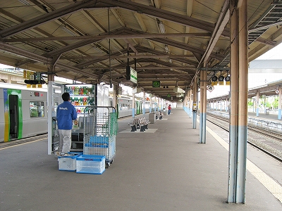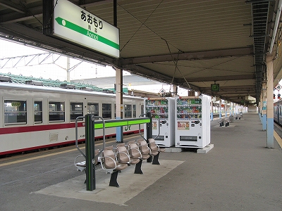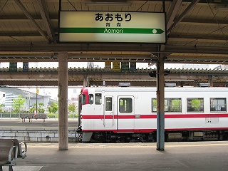 隣接してお土産ビルがあるが、そんなのがあるくらい、売れるんだ、と青森が旅人に好かれ続けてきたのが思われる。その建物と駅舎との間に、りんごを目いっぱい並べ売っていて、目を見開かされるほどの甘い香りが充満している。営業のために強力な香水でも撒いたのかと思ったほどだ。修学旅行の中学生らがその匂いに驚嘆して、歓声を上げながらその露店に寄って来た。
