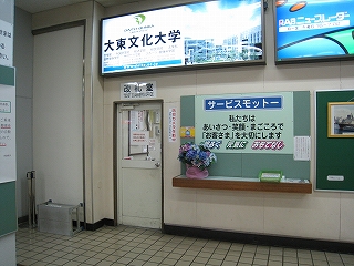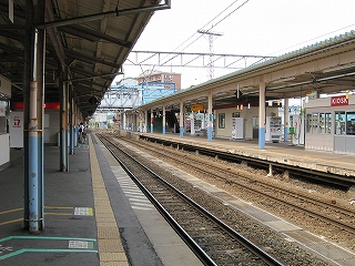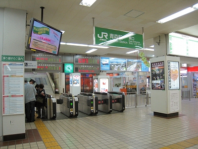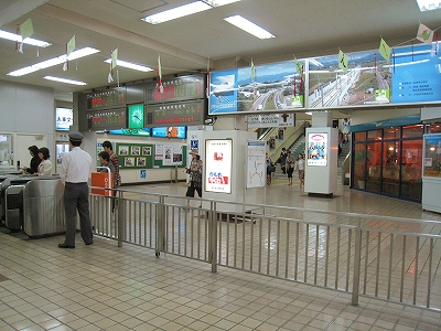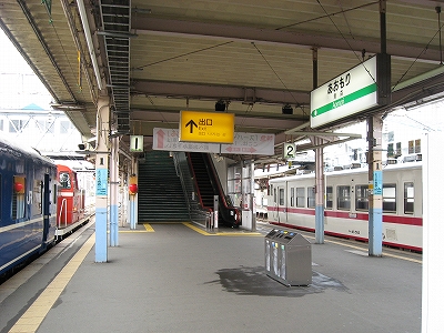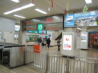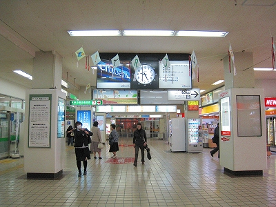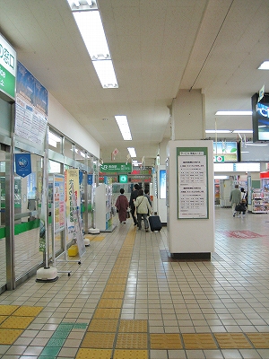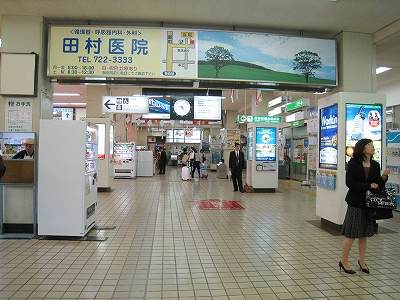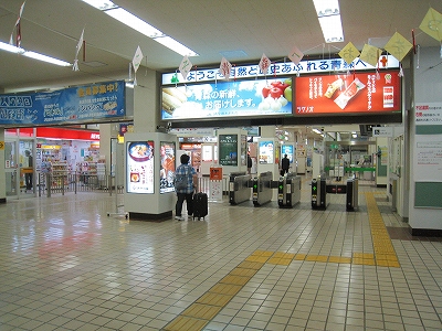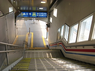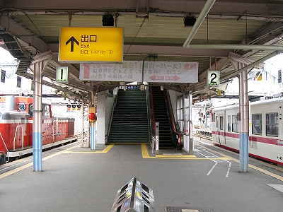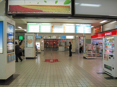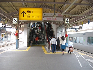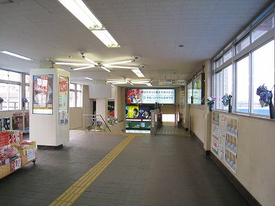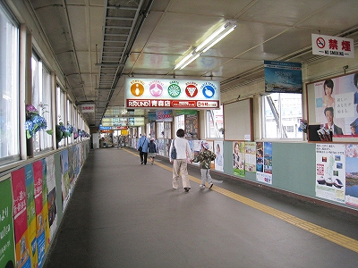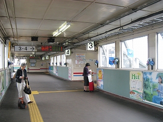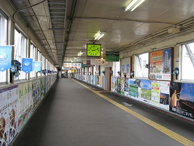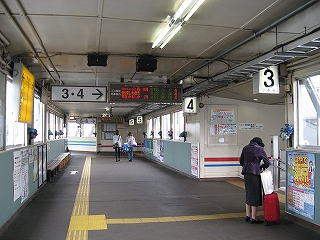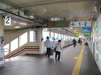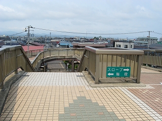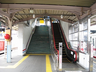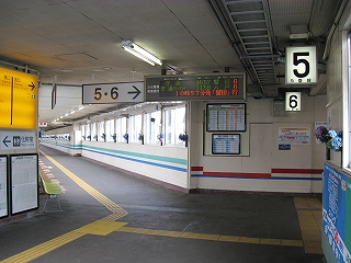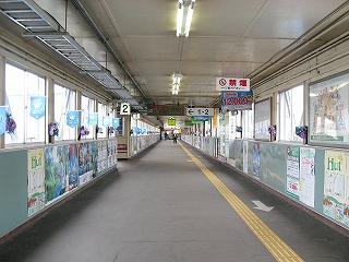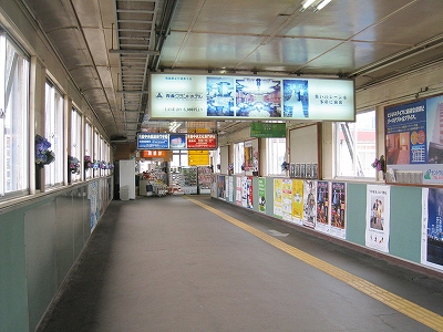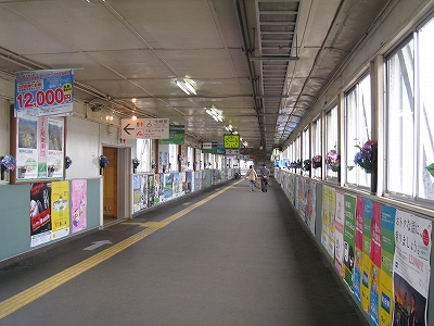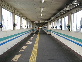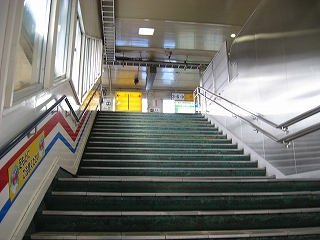 駅裏への連絡通路から見た5・6番線下り口。向こうが駅前。