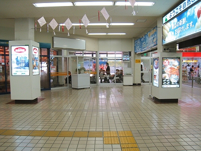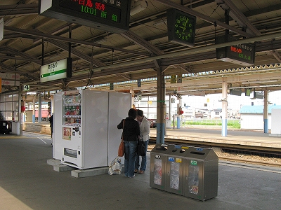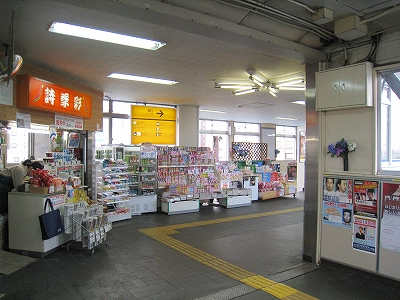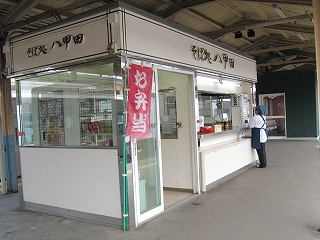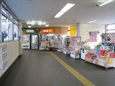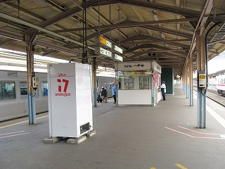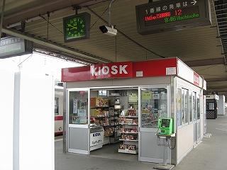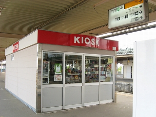 このホームの売店は休憩中。列車がここに停まらないときに開けていても仕方ないのかもしれない。