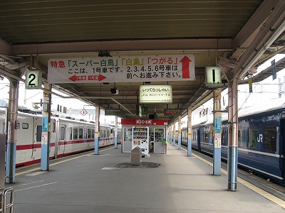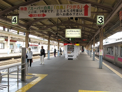 3・4番線ホームにて。スーパー白鳥などが停まっている。