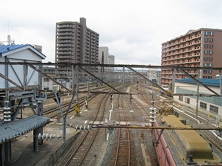 駅へは裏から入った。裏手へは鋼鉄の吊り橋が架かっていて、こうしてみると、青森駅構内は橋だらけだ。つり橋にしたのは、構内に柱を刺せなかったからだろうか。こちら側はどこにでもある住宅地で、団地もあった。むろんあらゆる人々が旅人に見えるなとどという夢のようなことはもはやない。むしろそれは厳しい風景だった。