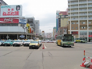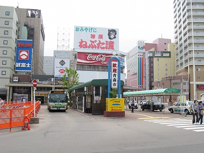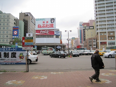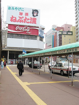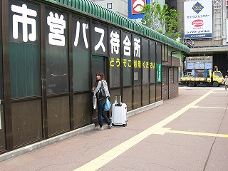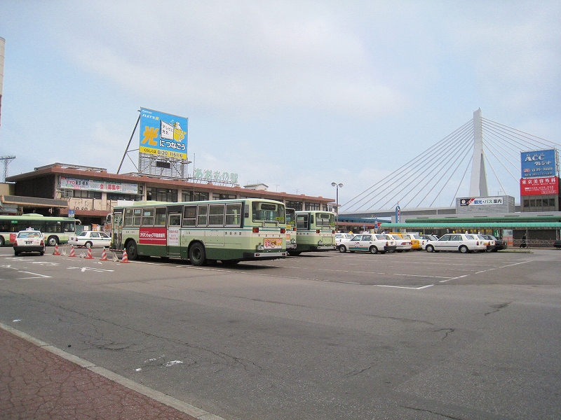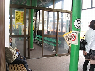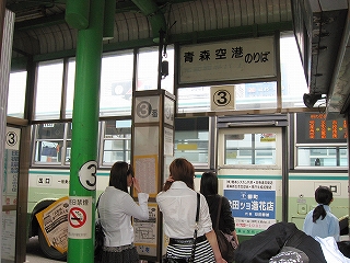 バス乗り場は地元の人でいっぱいに詰まっている。そこを歩いていると、一人の目が切れて色白の方に見つめられているのに気付いた。津軽美人ではないか。しかし私がよそから来た者だとわかると、その人は急に関心をなくした。たぶん、バスの乗り場を訊ねようと思っていたのだろう。この市内各地のバス乗り場のほか、JRバスの酸ケ湯、十和田湖行きや、東京へなどの都市間バスの乗り場もあり、バスが要のところだった。