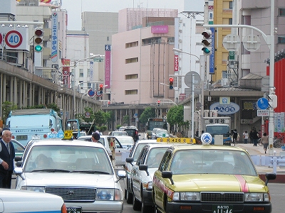 大通りを少しだけ歩く。アーケードの陰に大理石の礎が鎮座するシティーホテルや、ビル一階の飲食店、居酒屋、旅行代理店が押しひしぎ、混むほどに人はいないが、数人ずつ途切れずに人は流れてくる。自動車やバスはやむことがない。