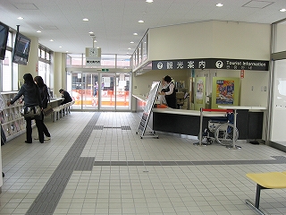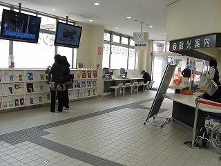 バスのりばの隣にできた青森市観光交流情報センター内にて。