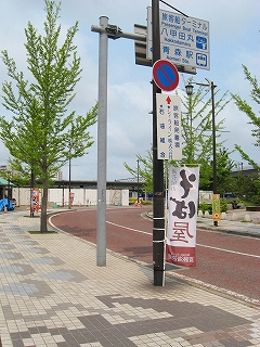 十和田湖行きのバスが停まるところ。そのためこのあたりは旅行者が集まっていることが多い。