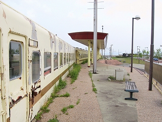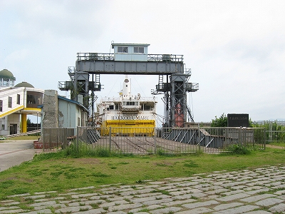 そのような喧騒を逃れて、構内の先端に近い、海辺の公園に赴くと、ビルの広告塔が遠巻きで誰もおらず静かで、一人旅を誰かに悟られないには、いい場所だった。休憩所代わりだった車両編成の塗装はめくれあがり、錆が垂れはじめた鉄の塊たる連絡船が岸壁に繋がれている。交通遺産とはいえ、変わりゆく寂しさから残したその結果が、当時の人の動きは保存できないし、当時を知った熱意ある人もしだいに減っていくことを語っていた。