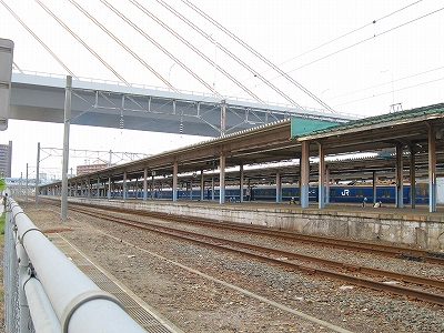 造花やいいトイレのある跨線橋の中に居ると、そのベイブリッジと争うほど、長いように思える。それほど構内は広かった。ホームの青色のトタン屋根が積雪や突風を暗示している。貧しい小屋の屋根を思い出した。