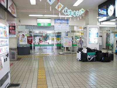 跨線橋だというのに函菓子を平積みした売店があり、さっそくの旅情の第一波に色めき立つ。しかしそれを押し隠して、ぎこちなく冷静に笑んでかわし、階段をどうにかこうにか降りていった。コンコースはまだ旅人も少なく、午前が午に向かって緩み切る前のちょうどよい、気持ちのよい時間で、それでも三人ずつ、四人ずつと地の人が駅の中に入ってきて、色ガラスの扉は、まだ見ぬ外をバスの音と断片的な風景で提示し、外へ出たいとの欲望を掻き立てさせた。
