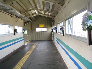雪国にありそうなトタンの鋭角屋根の水色がきれいな小さな駅舎に入り、改札内に入った。