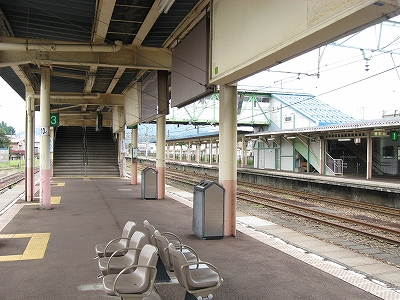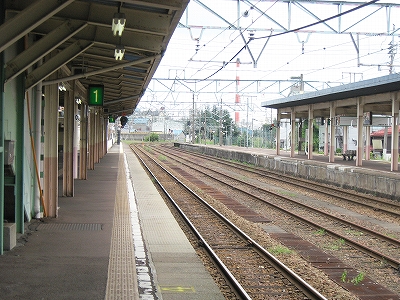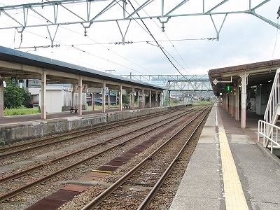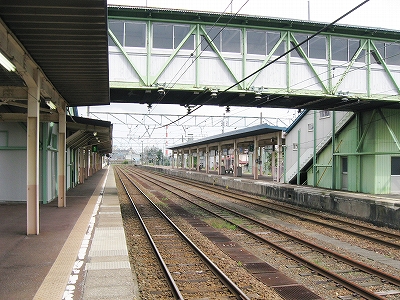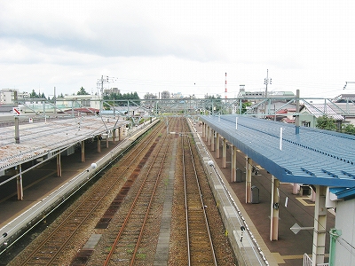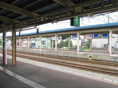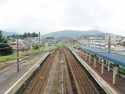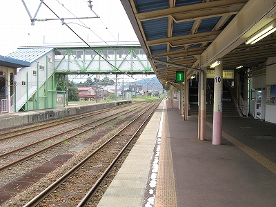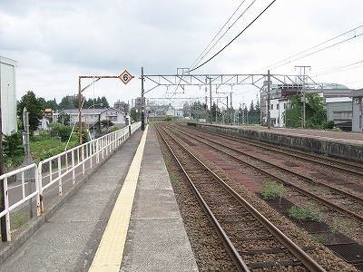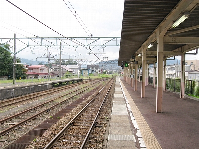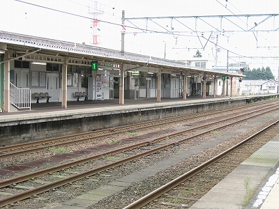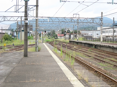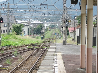 とにかく言われるがままに新井に来ただけなのだが、海洋が主役で、何かと大きな街が連なり、港と連絡を持っている新潟の街道沿いに育ったものだから、こういう湯沢ほどの特徴もない山手の街にあるしっかりした駅には、Yもかなり変わった印象を受けた。その山手というのはプラットホームにいてもわかるもので、例えば、裏手の住居の群れの向こうには、見慣れない里山が間近に頭を見せている。