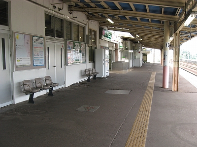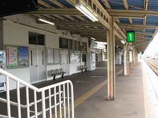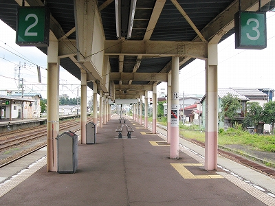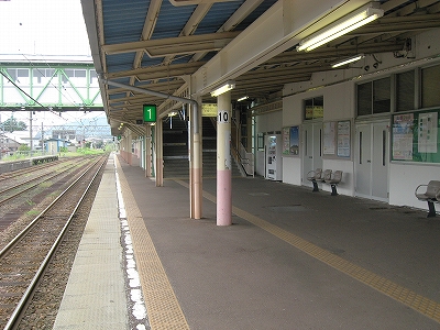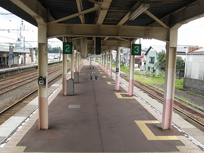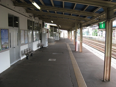 とりあえず「快速くびきの」という列車がちょうど新井まで行ってくれるというので、それに乗ってただ来て、降りて、というより降ろされて、山の幸を謳う広告灯や山の端のある雰囲気に目が留まったりと、見知らぬ駅に胸の踊りを覚えずにはいられなかったのだが、彼とてやはり人目を気にする性格なので、そんなに興味はないように装い、歩きながらちらっと見るだけで我慢しながらそのまま階段を昇って、トートを振り子にわざと揺らしていただけだった。