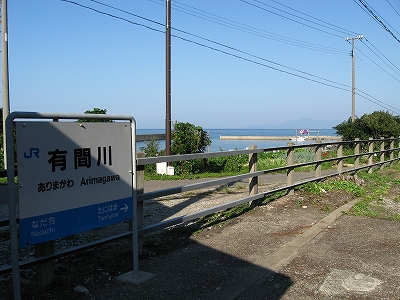 名立というところに着き、ああ、次なのか、と思う。またトンネルをくぐり、有間川に着いた。放送する車掌にとっても、列車にとっても、少数の客にとっても、通過地でしかないが、そういう車内にいるにもかかわらず私にとっては、土を踏みしめるつもりをしていた駅だった。