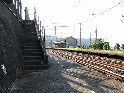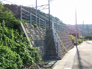 山側のホームは壁として、コンクリートの短い庇の付いた、2メートルぐらいの擁壁が立ちはだかっていて、その擁壁にも階段ができているのだった。その先を見上げると丘で、つづらおれの山道がついている。しかしこんなに出口が多いのは不思議だ。そしてそれは階段ばかりだった。
