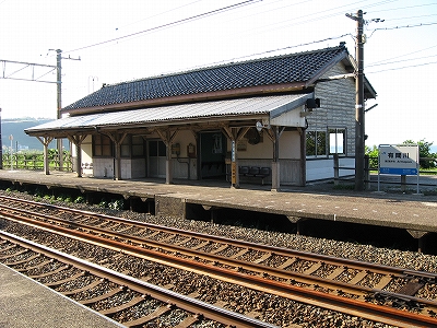 駅出入口付近にて、名立方。駅への案内板も、それらしさない。