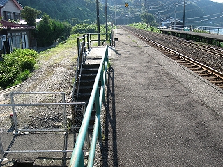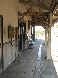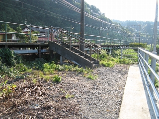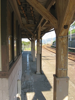 里道。単線時代ここの斜面にあった道をこうしてホーム屋根に移したのかもしれない。