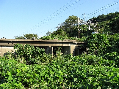 「この有間川駅、何かあるものに似ていないか…」。しかしなかなかわからなかった。ホームに直に沿ったコンクリートの擁壁、コンクリートの階段、海辺のトーチカ、要塞に似ているが、それとは違うもの…。