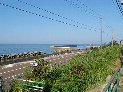 有間川漁港を望む。