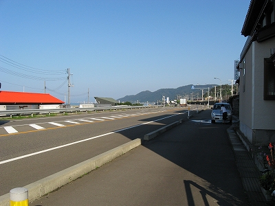 谷浜方。この奇妙に広い歩道はなんだろう。旧道か。