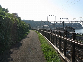 北陸本線は湯殿山トンネルで切りぬけているが、旧線は海岸づたいに山を回り込み、