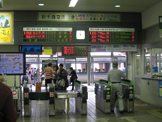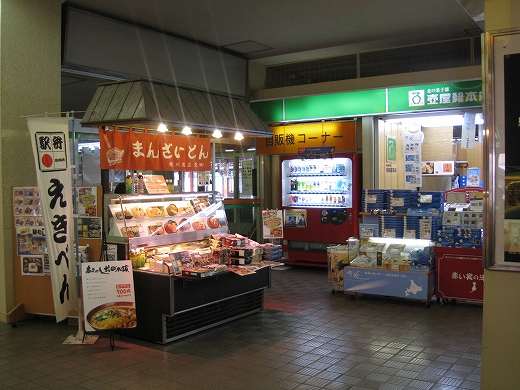 露店も商っているが、もはや意匠のようなとこもあった。しかし…この人たちみんな旭山動物園を経由するのだろうな、と。このとき大人気で、国内で知らぬ人はいないというありさまだ。しまいには私も旭川のことを旭山と間違えそうなくらいとなっていた。 どの柱にも、どの椅子にも人は待ち、或いは休憩している。なにせここは4方向の結節点である。札幌、富良野、網走、稚内と。ばらばらに降りて来るし、列車別改札などできないような賑わいは、最北の都市のなかなかなつかしい光景だった。