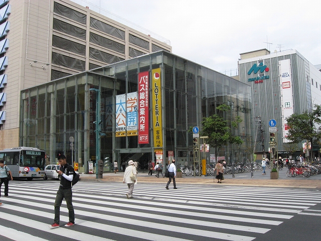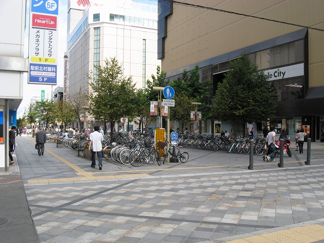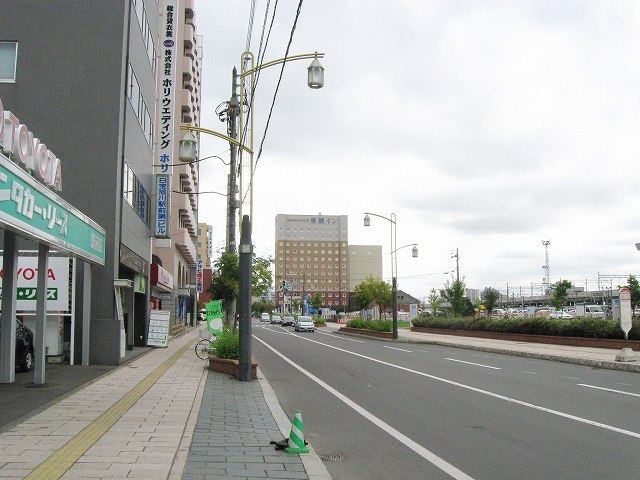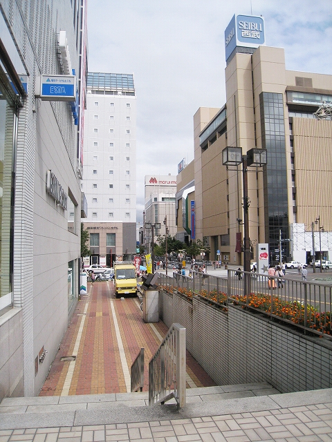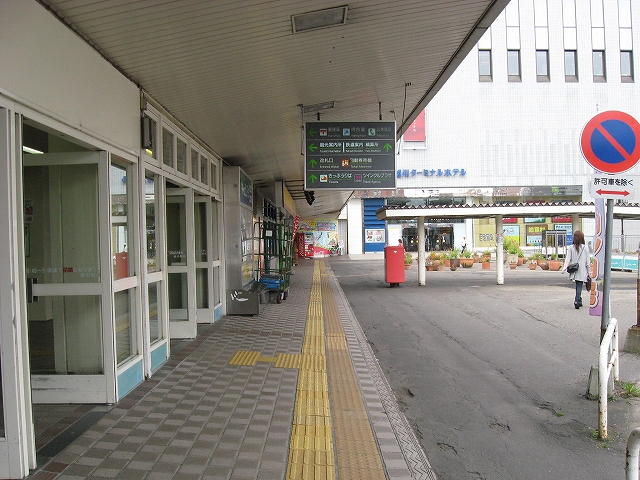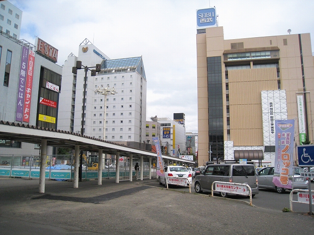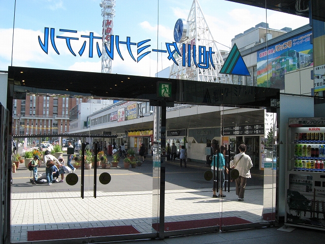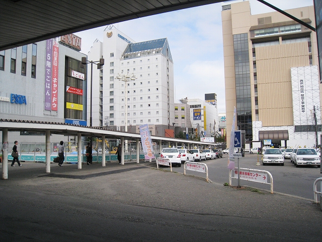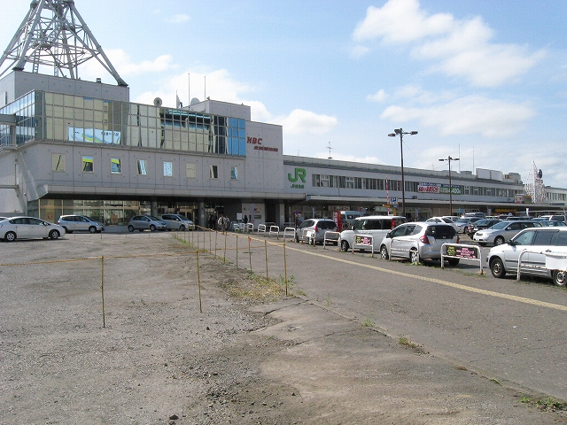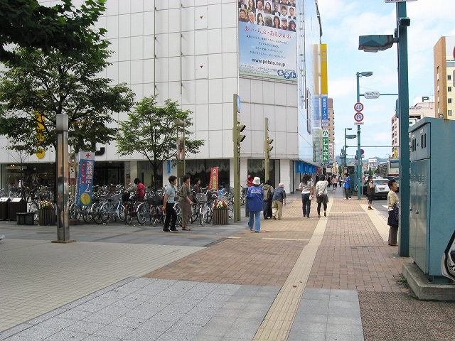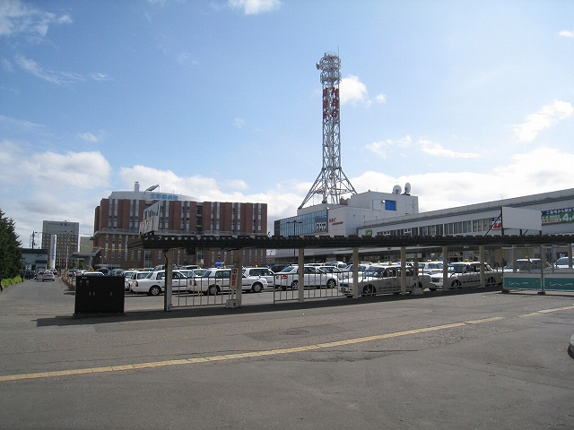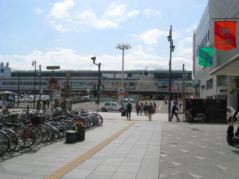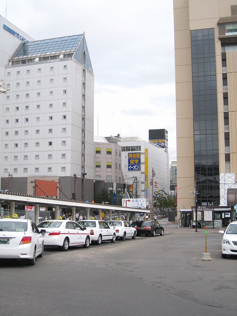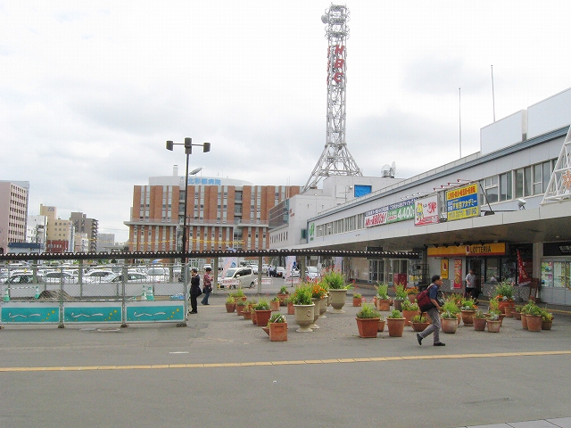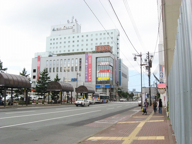90年代風の「シティ」な旭川ターミナルホテルの入口から父さんを先頭にした家族連れが出てくるのを横目に外に出ると、私は一瞬言葉を失う。「こ、これは…」 富山駅そっくりではないか! あのエスタ沿いの谷の階段と暖色系の煉瓦を詰めた感じ…。そこから見える街並みもなんとなし似ていて、正直、ぜんぜん旭川に来た感じがせず一人でずっと苦笑い。たぶん設計が同じなのだろう。しかしロータリーは昔の柵が立ち並び(昔そこにはタクシーの運ちゃんが腰かけて煙草を吸っていたような…)、舗装も古くて、やはり私はかつての民衆駅のことを思い出していた。こんなところは車やバスが危ないし、怖い人がいそうだと、幼心にろくに見もせず、足早に駅前を去ったものだ。そのときのそのまま、いま、そこにあった。