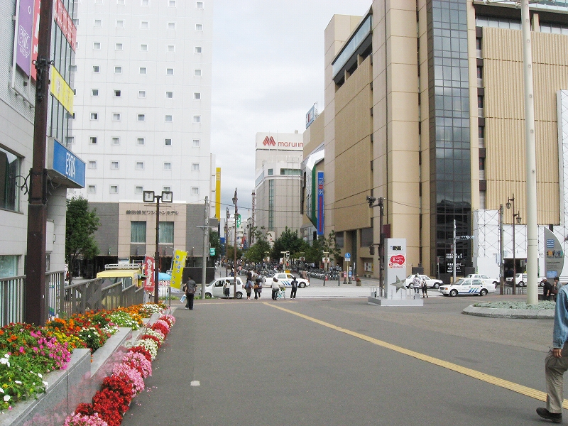 私は定められたように、西武などの建物の見える大通りに向かう、が、ここでも私は驚き呆れてしまった。なんと煉瓦を敷き詰め、すべてが歩行者天国として設計され、人々が行き交っている。私は歩きながら、誰がこんな英断を下せたのだろうか、と。この発想はなかった。あったとしてもそれを実現したというところに、感銘を受けた。動物園といい、旭川にはよほどの賢者でもいるかしら、と感心しつつ通りを歩く。陽が出るとものすごく暑くて、旭川は、ほんとうに真夏であった。