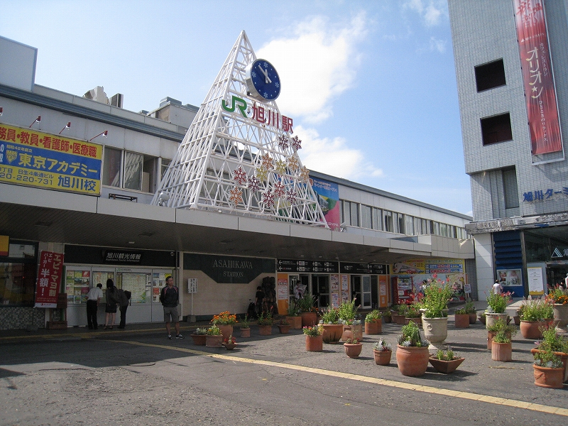旭川駅のあの三角のオブジェは雪の表象で、夏であっても、それは北國の盆地の暑さであると規定する。ついでに、私は富山のこともそれを直視することで忘れる。富山とはけた違いに遠い、旭川。今自分はそんなとこにいるんや、と思うと、それたけでしんどくなった。旅行ははて何日目だろうか。