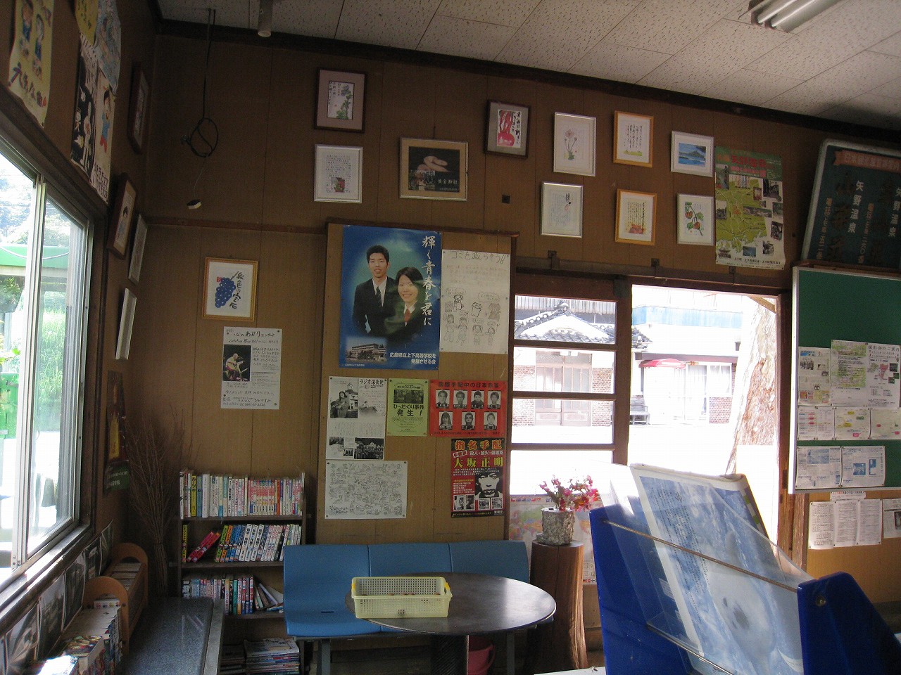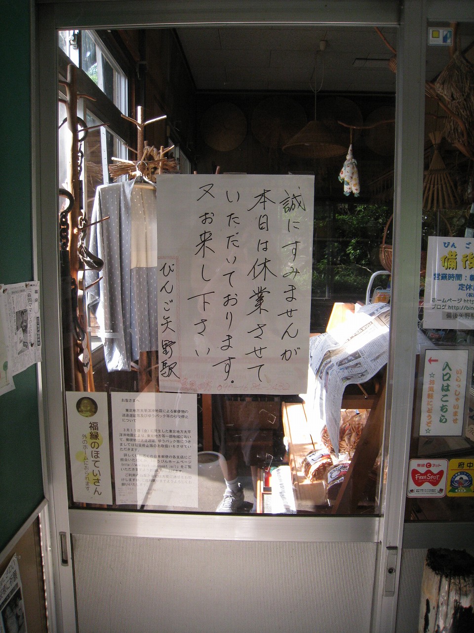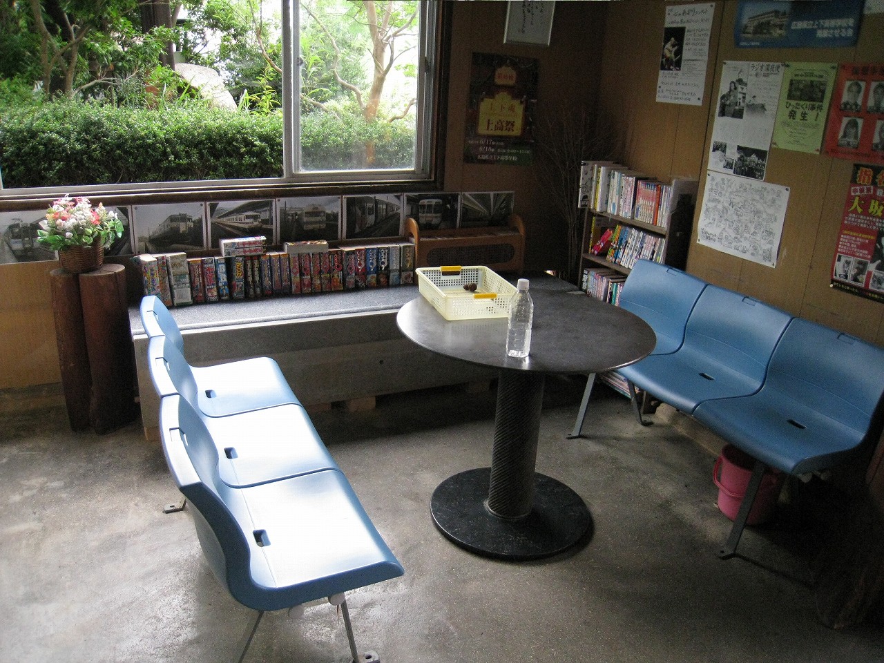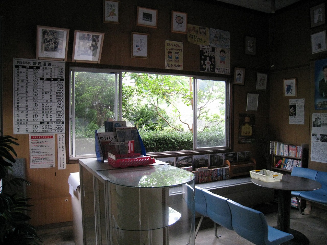 駅舎内は民芸品と額縁の嵐で、随分とおもしろい駅に来たなと。やはりこういう駅もないと駅旅は楽しくない。人形、彫刻、書籍、そして壁一面の手書きの詩画…お店の方はこのとき残念ながら臨時休業だった。もともとここでは20分くらいしか時間がなく、食べるのは無理だっただろう。車で来て、少し列車に乗るのもいいかもしれない。にしても、豚の丸焼きかラッコかわからない滑らかな自然木を見て、ほんと趣味全開で、気楽で親しみやすさを覚えた。きっと店主もおもしろい人なのだろう。