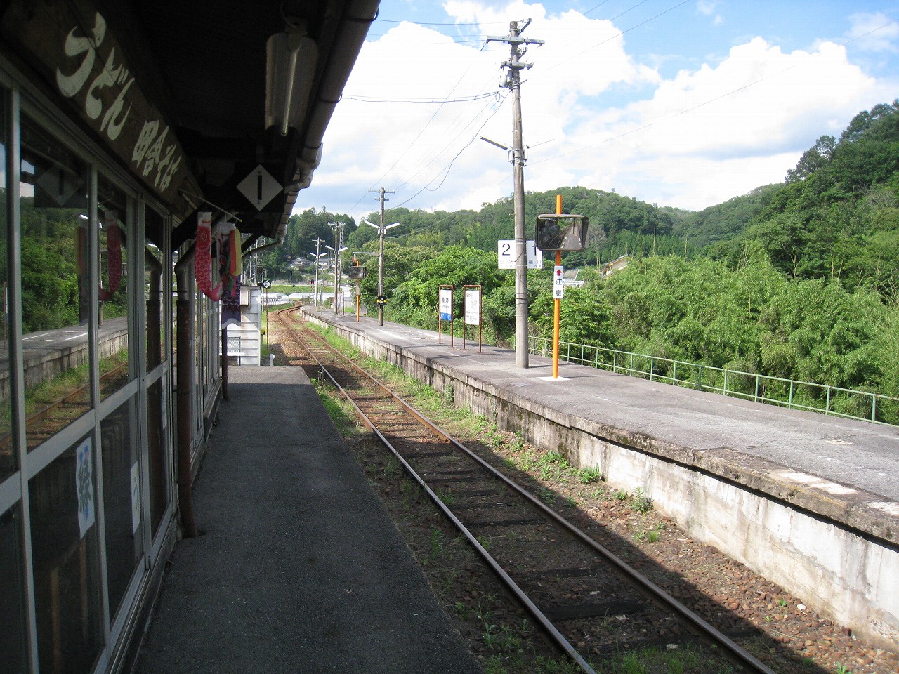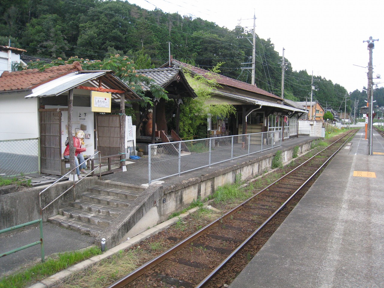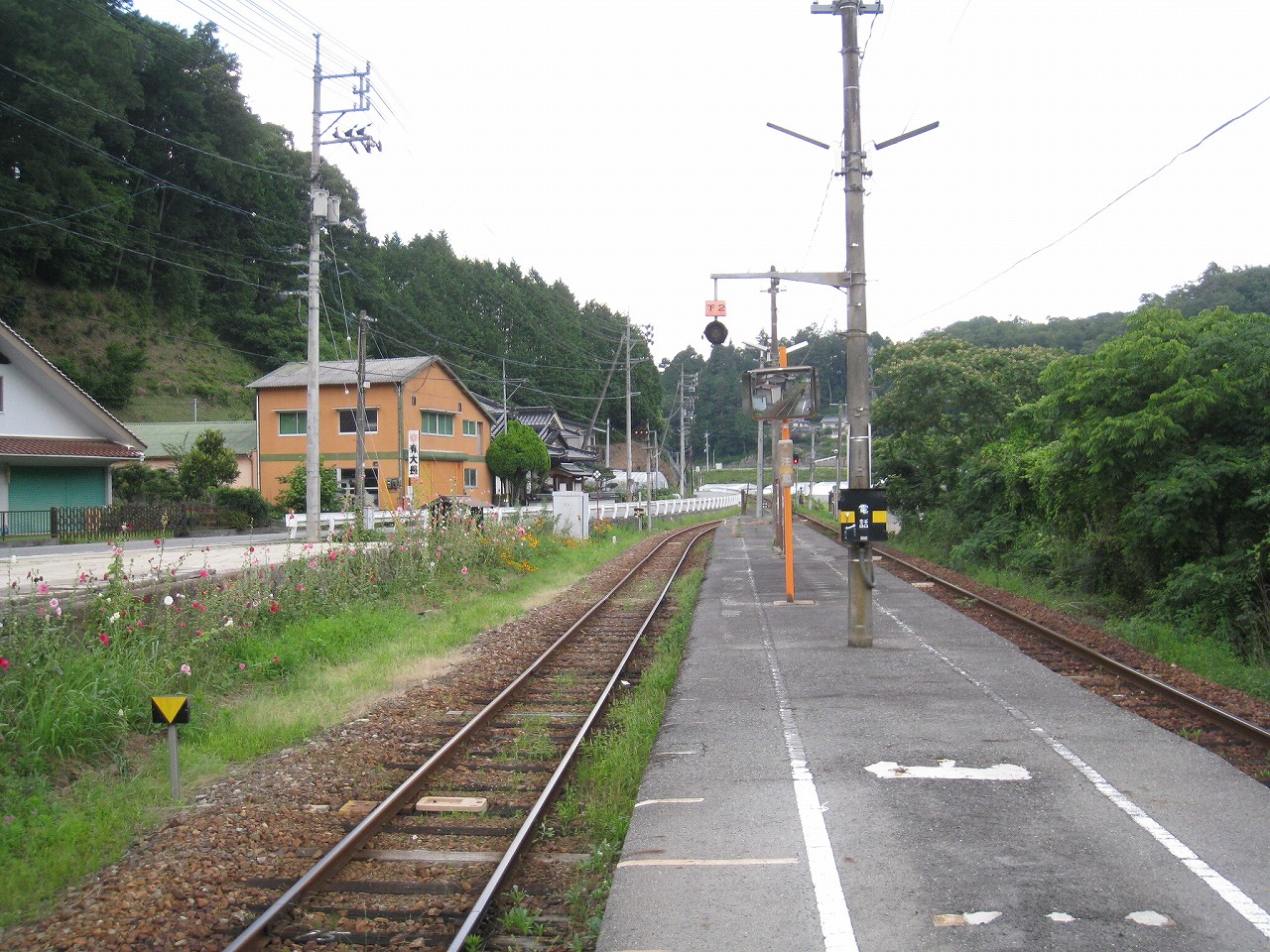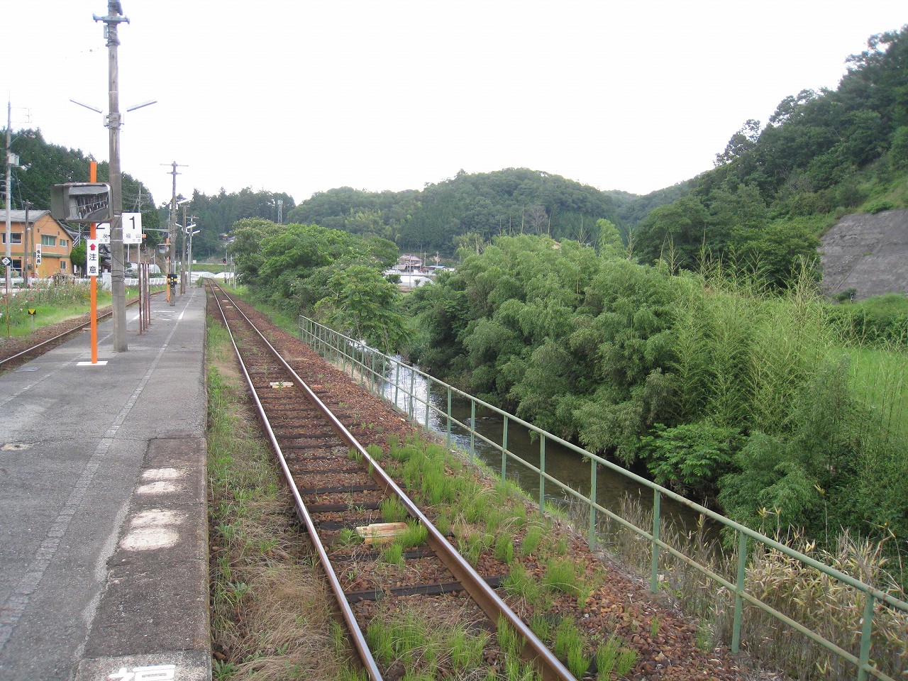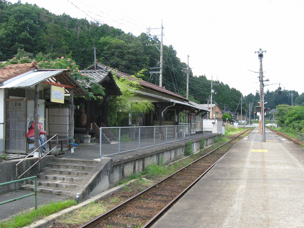 昭和初期からのうろこ張りの駅舎には立派にカイヅカイブキが緑に燃える炎を添えていて、それは何か暑苦しいソフトクリームのようであり、ソフトクリームと期待した幼子の期待を裏切る何かまったく別の、とてつもなくおもしろくない何かかもしれなかった。