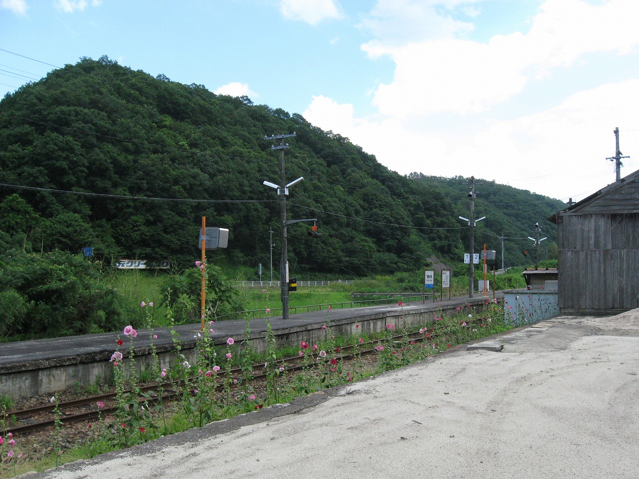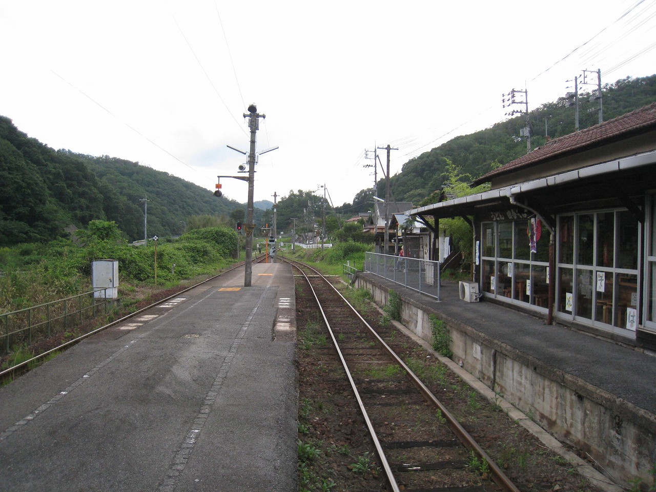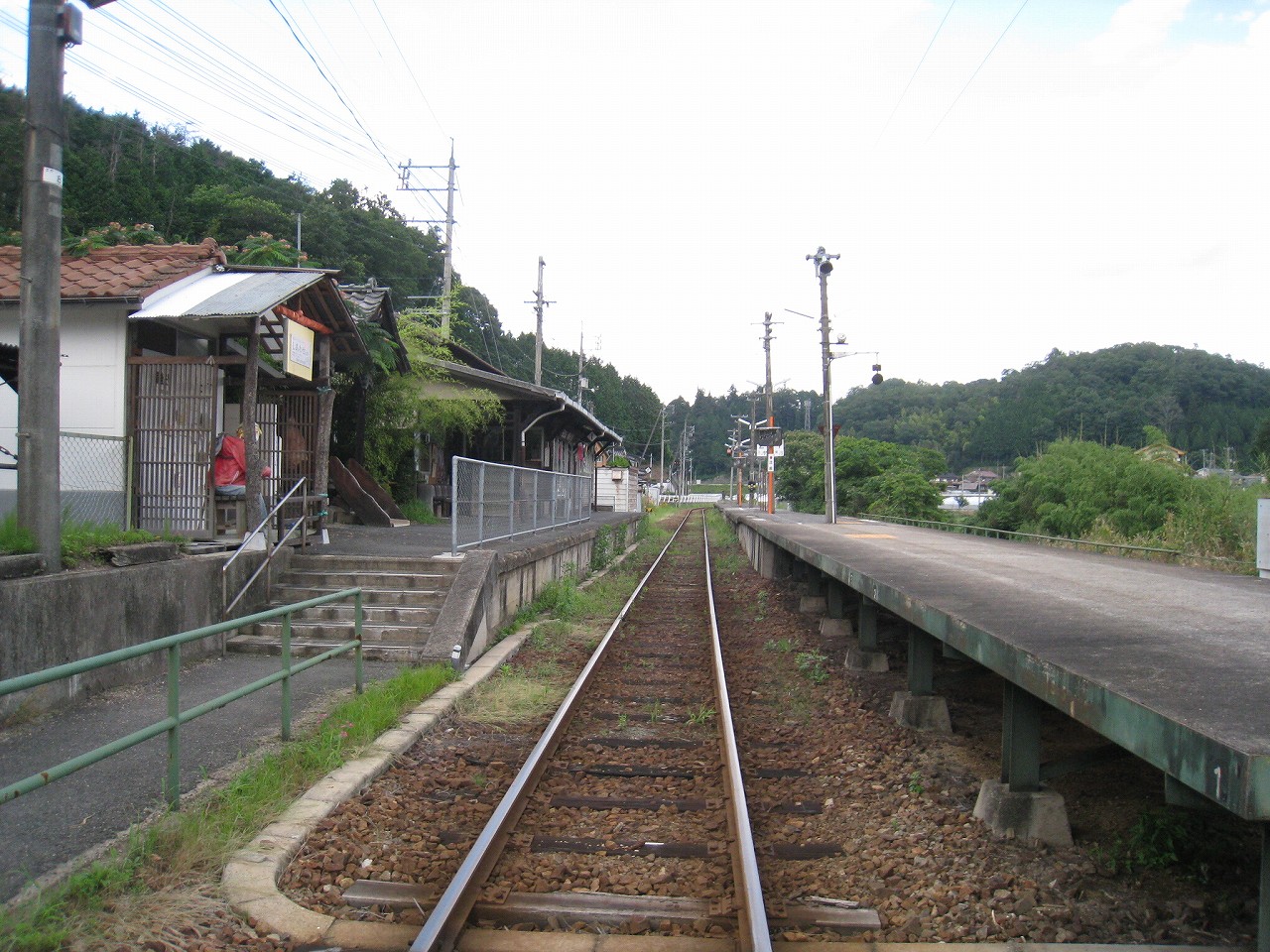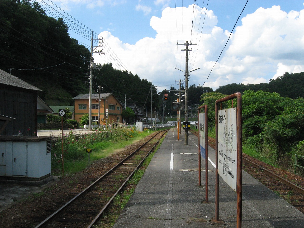 昭和初期からのうろこ張りの駅舎には立派にカイヅカイブキが緑に燃える炎を添えていて、それは何か暑苦しいソフトクリームのようであり、ソフトクリームと期待した幼子の期待を裏切る何かまったく別の、とてつもなくおもしろくない何かかもしれなかった。