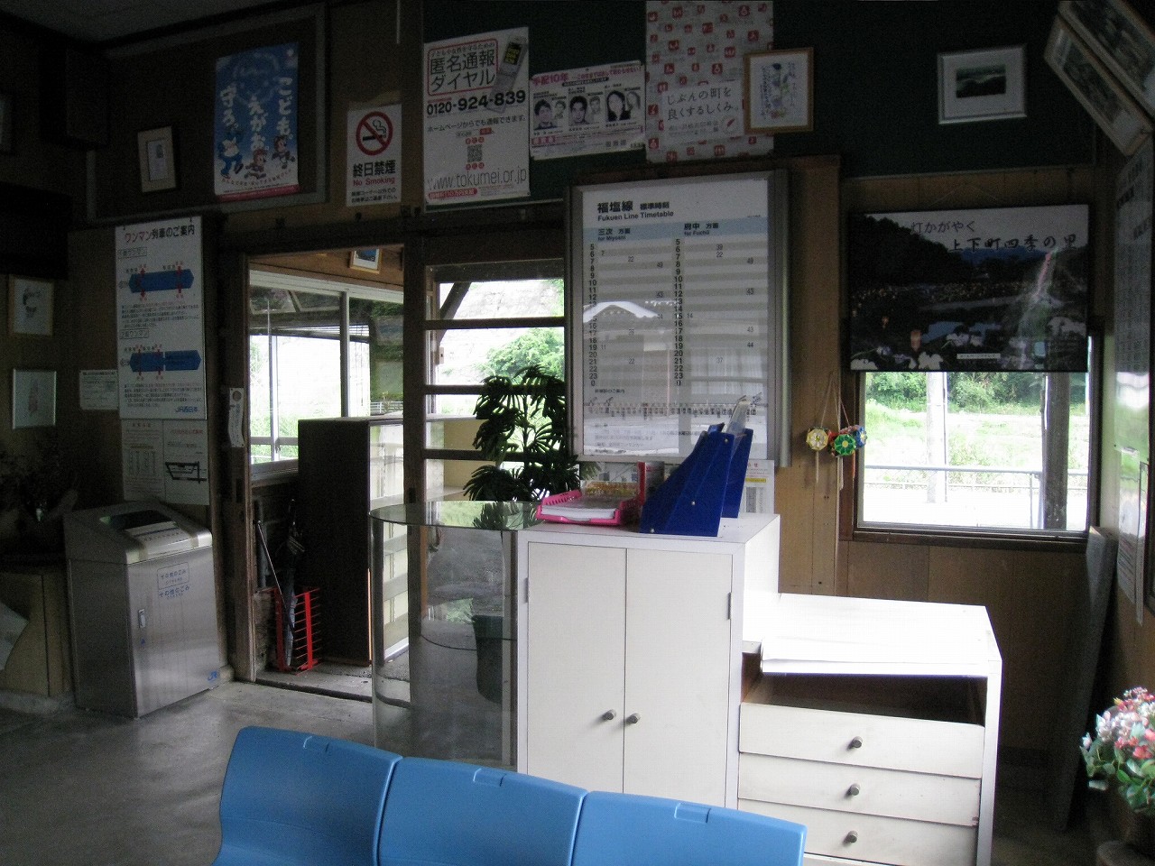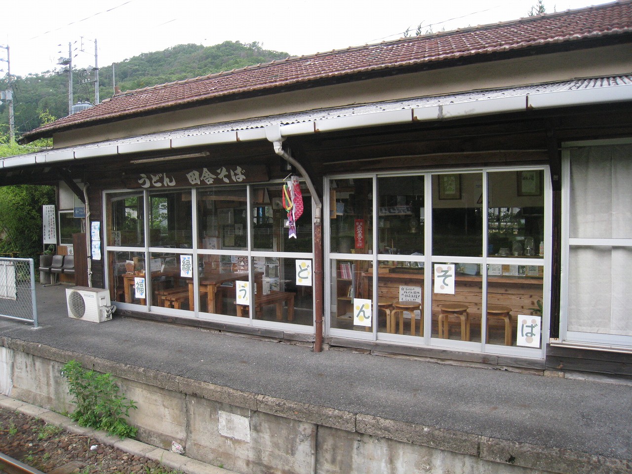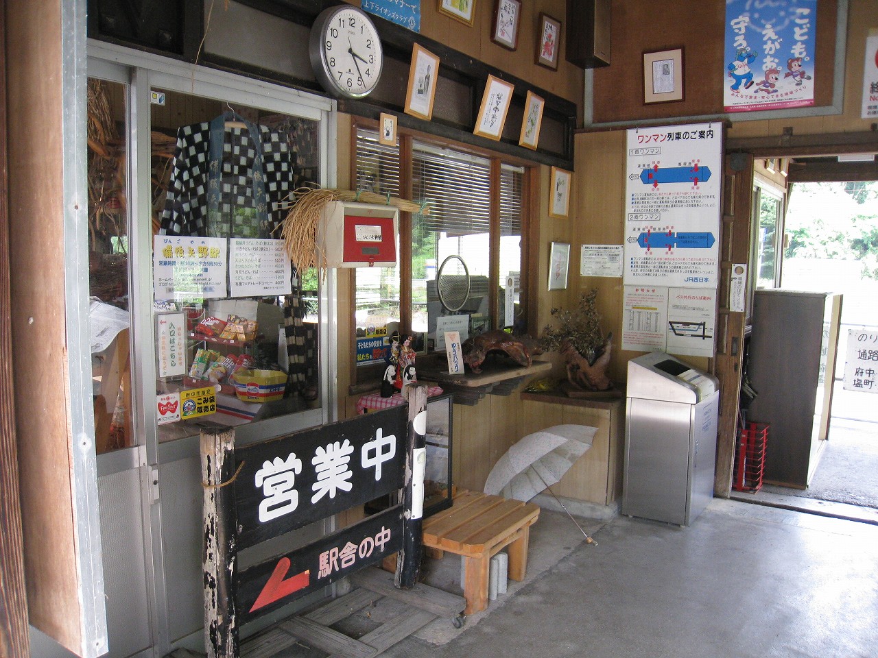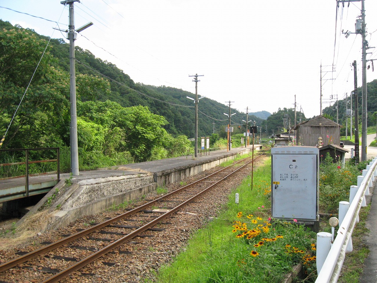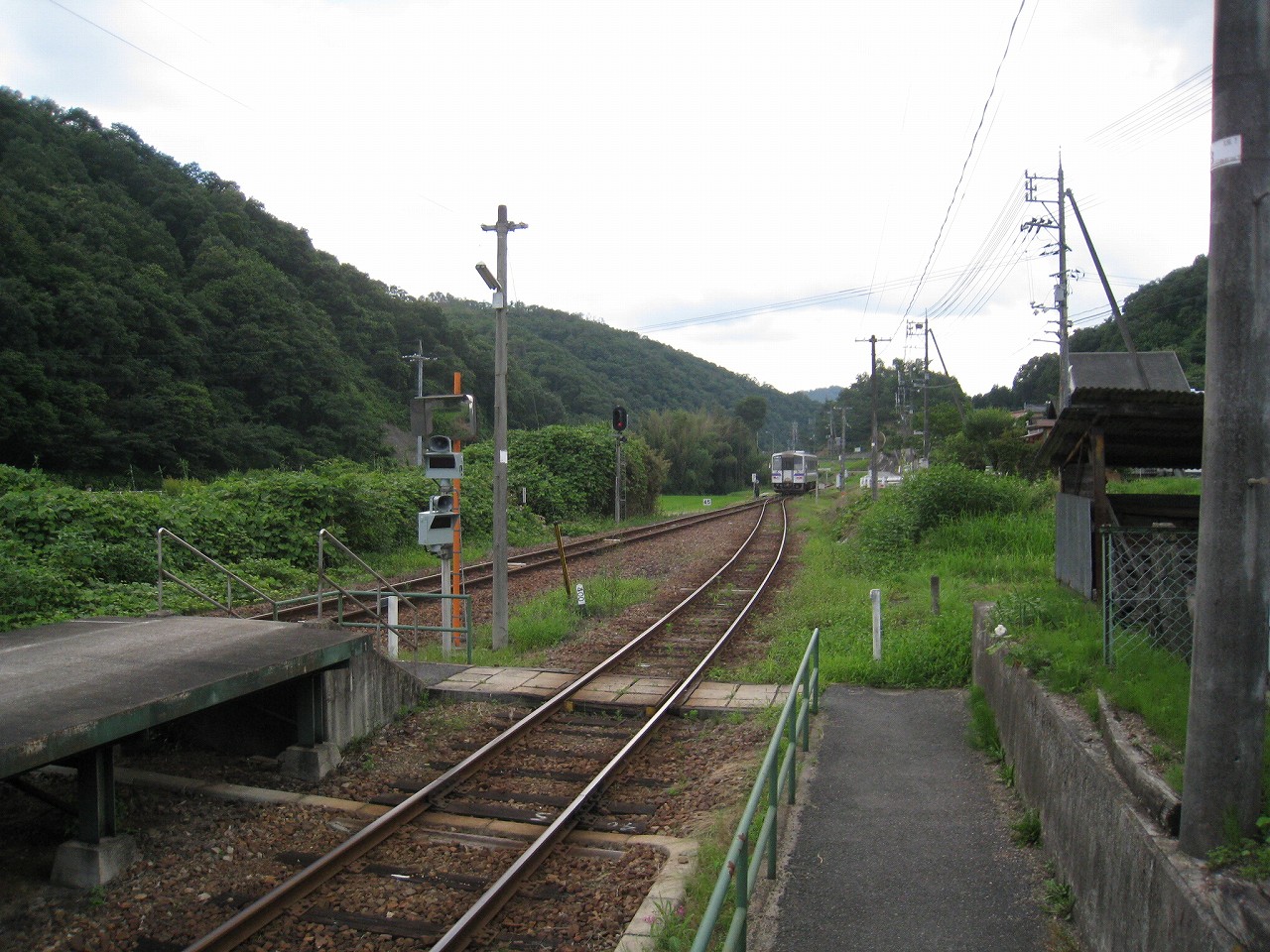 昭和初期からのうろこ張りの駅舎には立派にカイヅカイブキが緑に燃える炎を添えていて、それは何か暑苦しいソフトクリームのようであり、ソフトクリームと期待した幼子の期待を裏切る何かまったく別の、とてつもなくおもしろくない何かかもしれなかった。