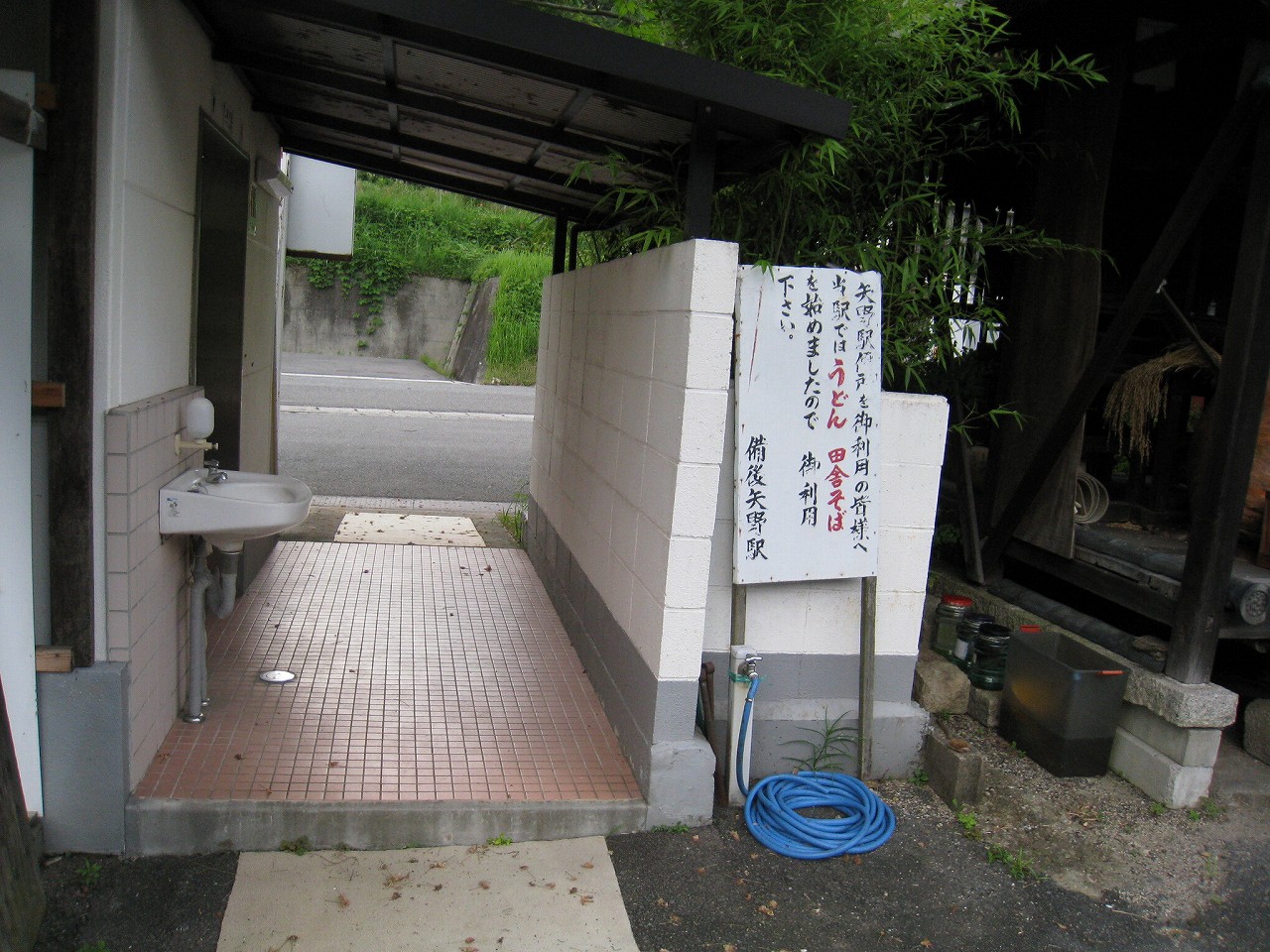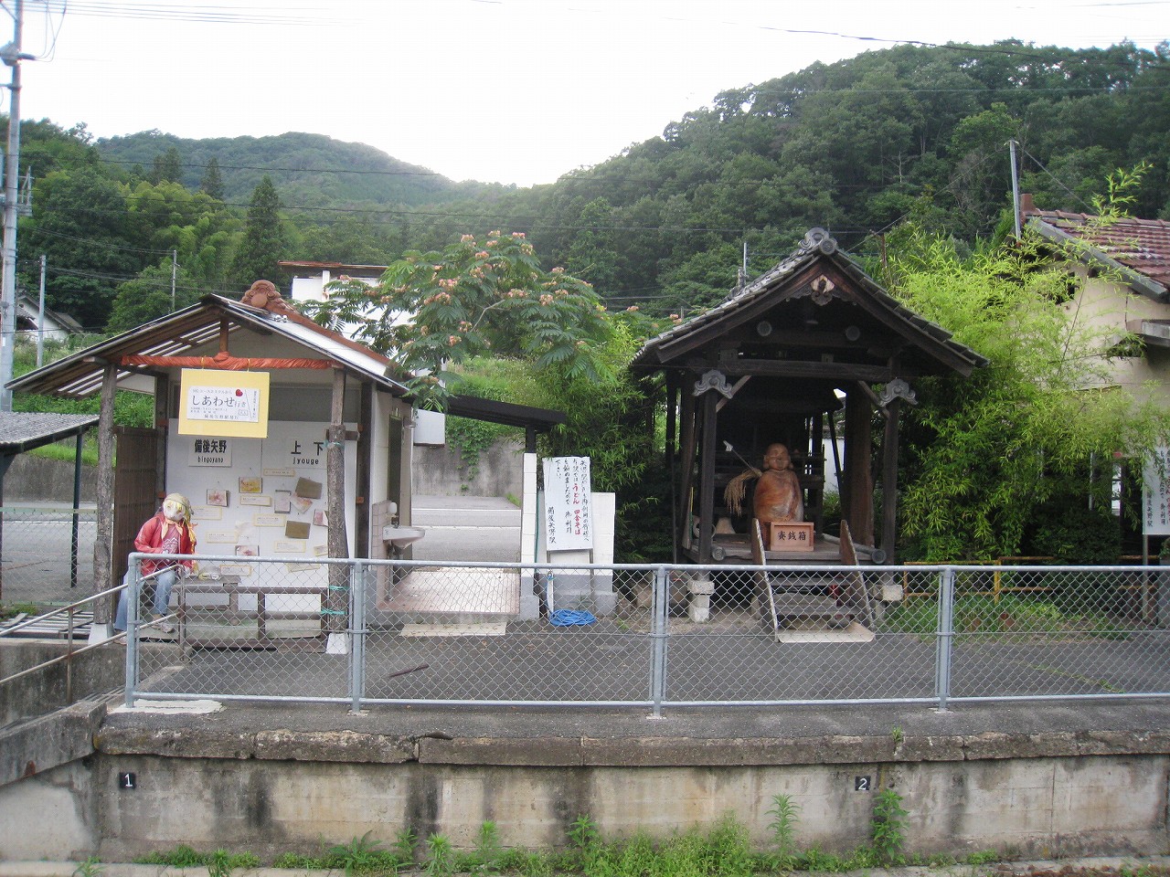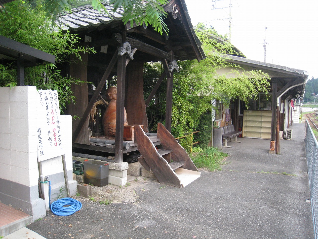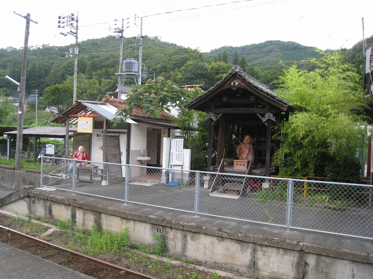 降りた瞬間、これはまた濃い駅に来たなぁと。旧来の木造舎ではうどん・そばをやっていて、布袋さんを鐘楼の下に祀ってある。裏側は矢多田川が流れる風景だが、駅が濃すぎてほとんど印象に残らなかった。