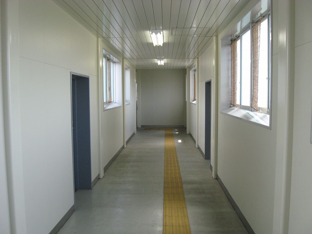 最近のエレベーター用通路はまるでそれだけで建物みたい。
