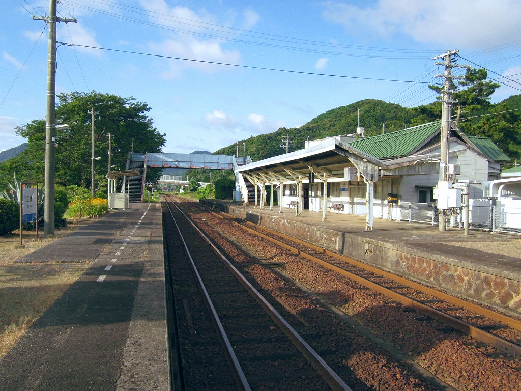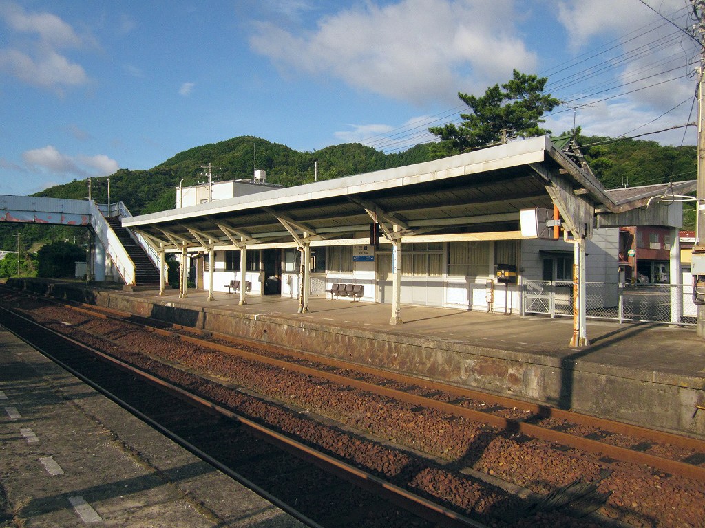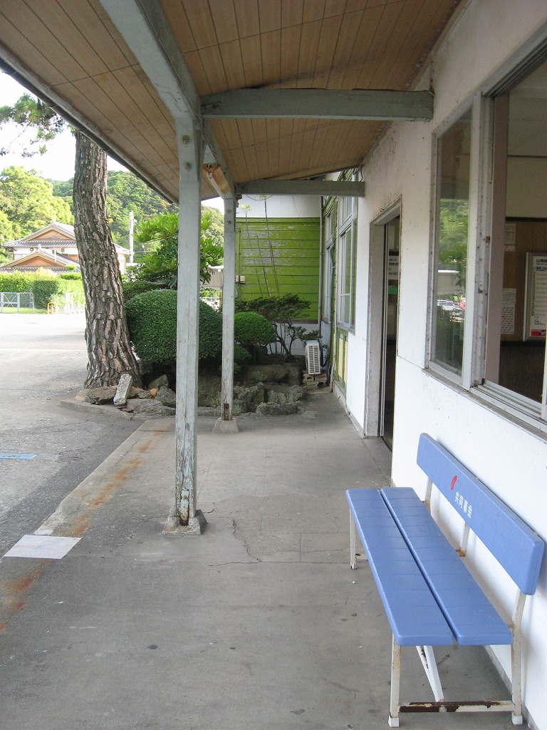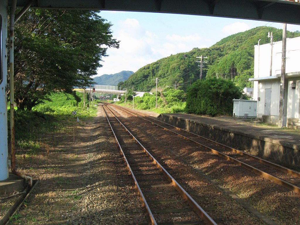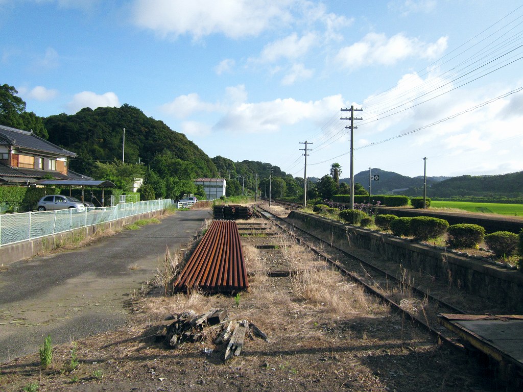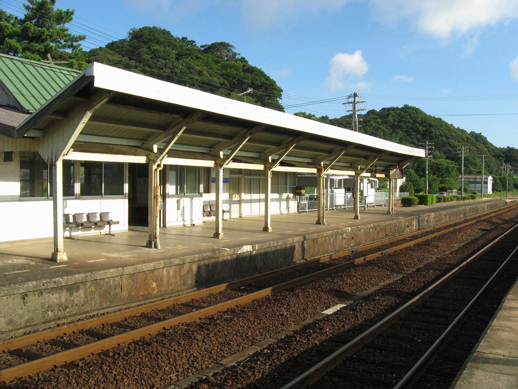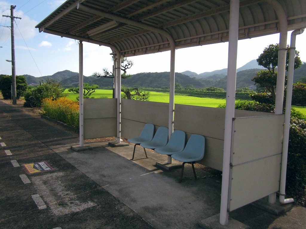 もうぼろぼろの看板を掲げた中華そばの店や、海の本町に出るまでの山道に臙脂の甍がつづいていることからすると、町の集約化の前はここもほかと同様、そこそこ人々がやって来るところのようだった。きっとあの右手の乗合馬車を飛ばしたに違いない。朝鮮人帰還の碑もある。ずっとさきの江崎は天然の良港だ。駅舎も洋風の三角で、トタンなんて戴いている。こうして駅の建物の正面を向いていると、今にも海風にまみえそうな、松籟響いてきそうな、そんな雰囲気で溢れていた。けれど私以外、もう誰もいない。