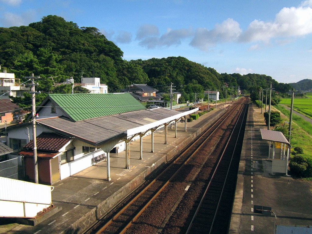 もう十分に明るい時刻だが、ほとんど人を認めない。けれどこのへんにしては当時かららしい、立派な木組みの建物が、あっちに寝そべってる。急行ならまず停車するだろう。