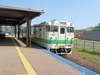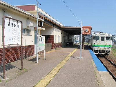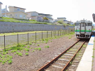 海は隠されて速度を落とし、江差に間もなく着く。が、どこにもでもありそうな郊外の風景で、あれっこんなだったけ、と、少し動揺した。でも駅がもてあましたように古かったので、「我 またもや鉄道の栄光ありしの末端に来たり」 なんて機嫌をよくする。運転士に切符を見せて降りる。降りたのは4人ほどだった。