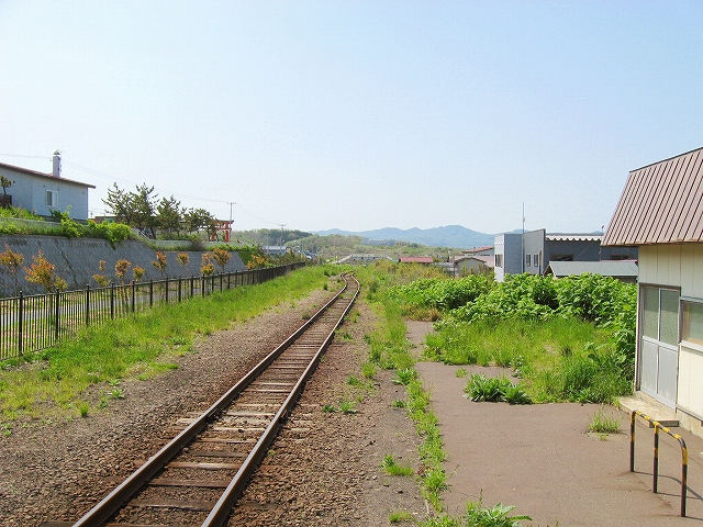 ともかく風が強い。しかし初夏の陽光の強さと海面を渡ってくるこの冷風がここちよく拮抗し、どんな欠点も付けられないような天上の気候を造り出していた。駅舎内への出入口とは別なところに、錆の塊のようなラッチが放置されていて、そこから潮風がためらいなく入ってくる。その延長線上の丘を下ったところに海面が横たわっているのであろう。