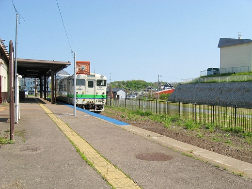 では乗っていいですよもう、と、掌を差し伸べるので、どことなく強制的に車に送り込まれてしまった。迷っているうちに発車でもして文句を言われても取り返しがつかないからかな、と思いつつも、車窓から江差駅の駅舎の壁ばかりを見ることになりもどかしかった。さらに客入るかと待ったが、誰も来ず。少しあの駅員がかわいそうに思えた。発車前に客が駅に駆け込んできて、「早く早く!」と叫びつつ、運転士のところまで走って「今乗るからもうちょっと待って」というやまた引き返して、客のところまで行って案内し、愈々電鈴を響かす、そんなことのために、あの人いたんじゃないかなと思えて。