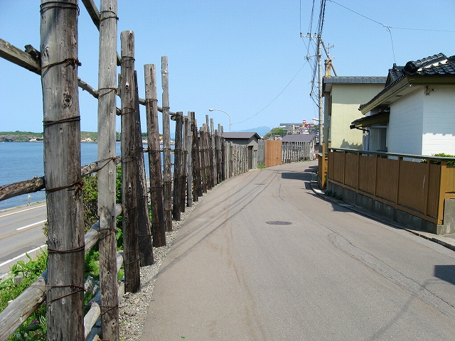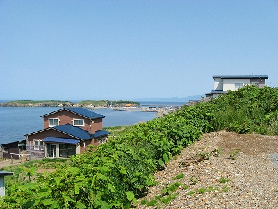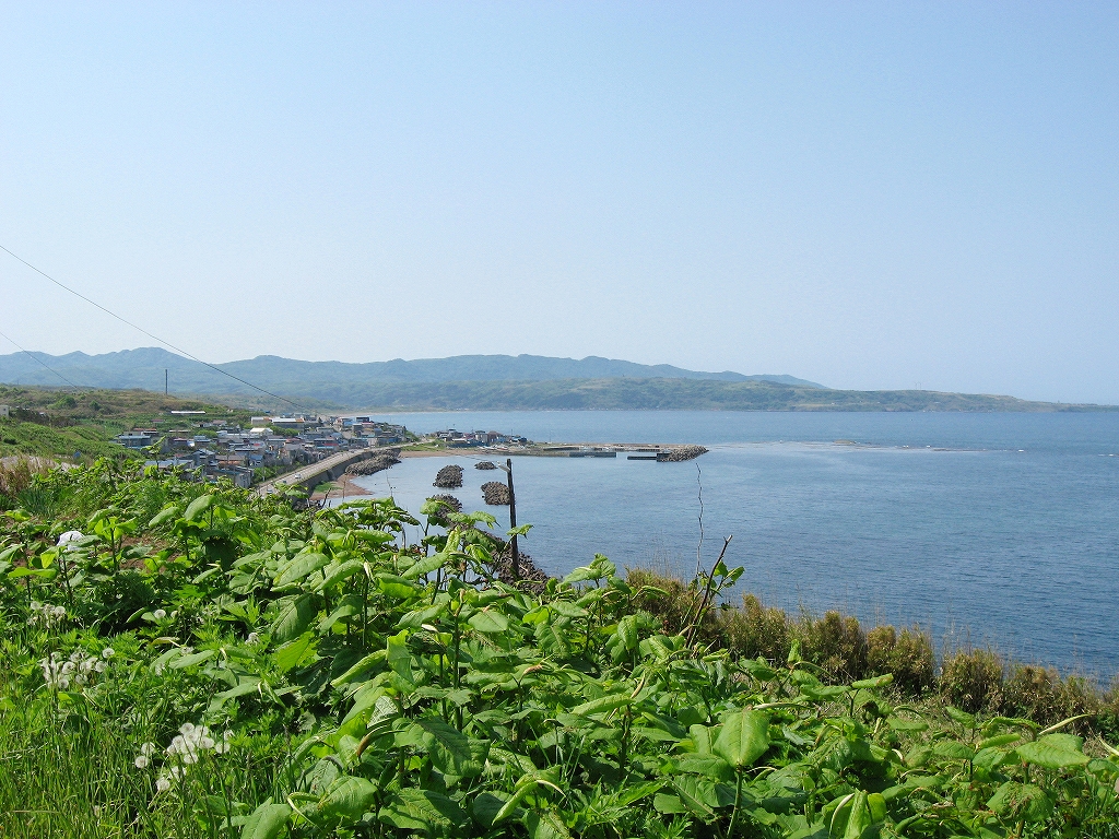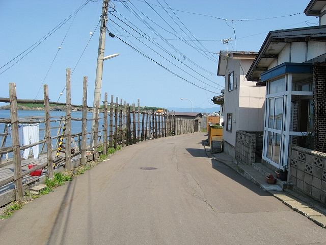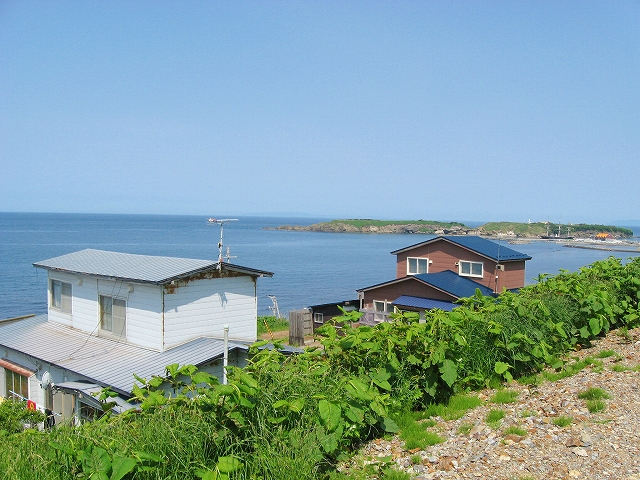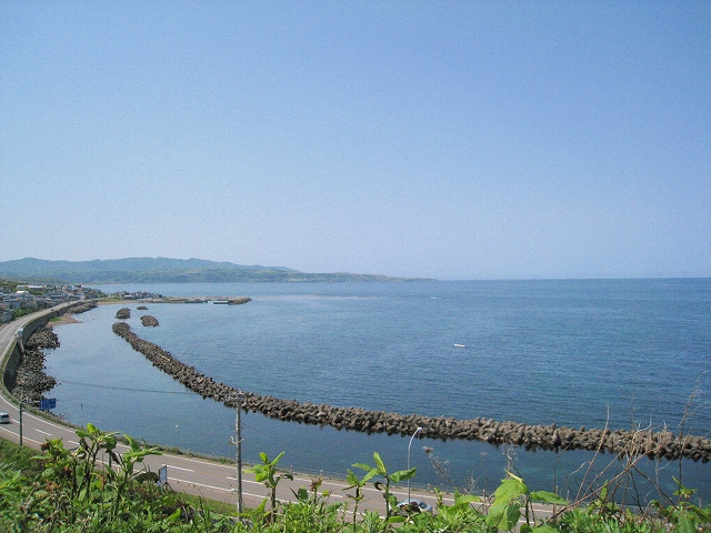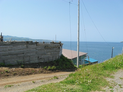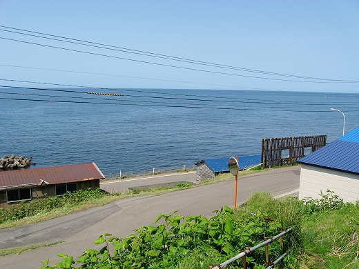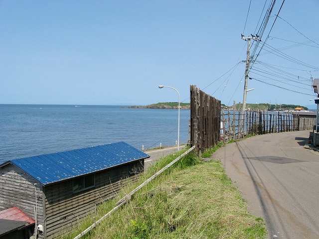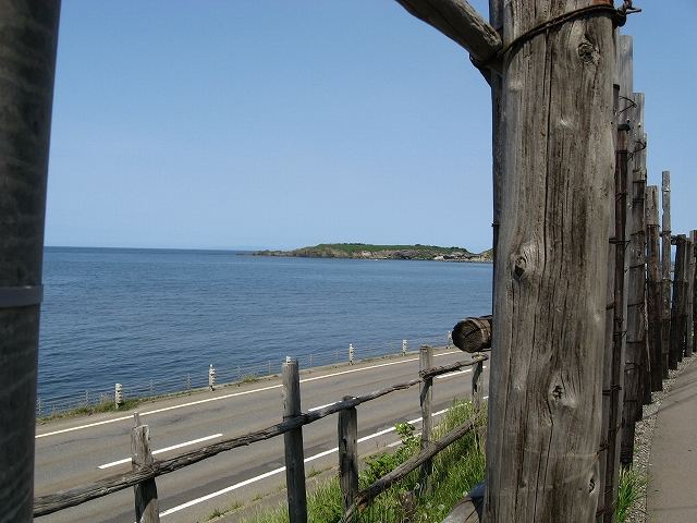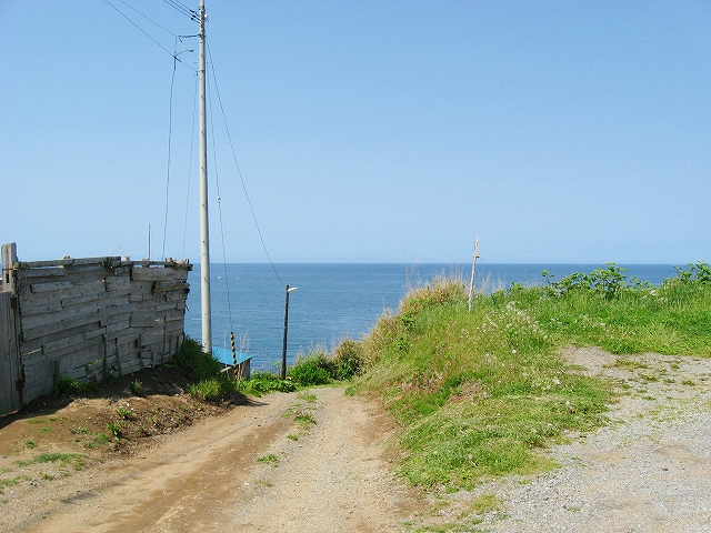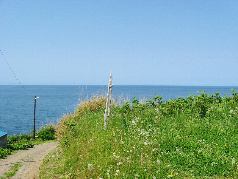海の方向の道は土のままだった。私有地との判別もつきにくかった。ともかく晴れ上がった空に、風がうれしいほどに強くそして冷たい。あたりは砂丘が著しく隆起したような相貌を見せていた。道は突然カーブし、思いもかけず数十メートルの高さで海を見下ろさせた。「こんな高いところだったのかここは…。」 海岸道路でさえ細く見える。足元の土手には葉の大きな草が夏の端緒を賛歌するよう鮮やかに縁取って、遥かかなたのロシア沿海州から吹き付ける冷涼な強風は土をときおり舞い上げ、もはや陸奥の国の延長などではなかった。もしかしてと左右を見ると、下手な私でもスケッチしたくなるぐらいくっきりと海岸線が見て取れて、その自在な曲線は子供のおもちゃの棒になりそうなものだった。「昨日内浦湾を見て、今日は日本海か。なんたる雄渾の旅。」 これでさえできるだけ両海の近いところを横断したのだから、道内の心央を通りしかばいかほどにまでとおぼゆれど、却ってあの真夜中の道南密林越えが、時間と、困難さを伸ばしたのだと知られたようであった。「この辺まで来るとさすがにロシアを想わざるを得ないな。」 それはときにこの国幹から外れたところにおける危機と隣合わせあるのも感じさせられつつあった。