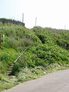 草で覆われているからわからないが土の崖になっている。