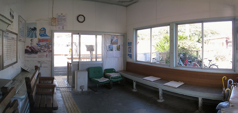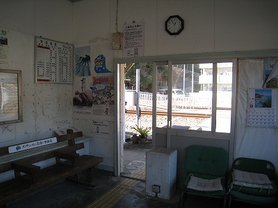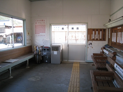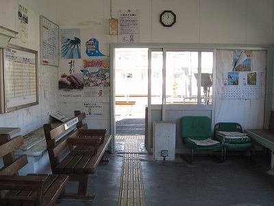 駅前商店もあって、集落の中という趣きが断然強い。駅舎もモルタルでしっかりしていたから、かつては小駅にしてはお堅いところだったのかもしれないなって思う。腰回りに細粒砂利の吹き付けがあったのだった。