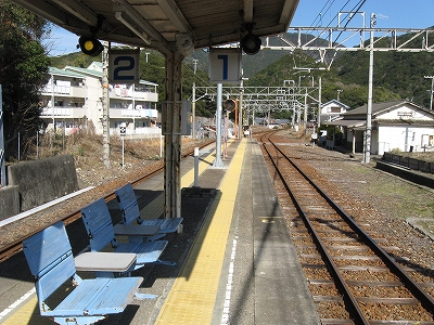 戻ってきて江住の表示を見ると、これも海を控え持つ駅かと見方が変わる。澄んだ入り江とも取れ、町支える入り江がある住むにふさわしい地も取れた。