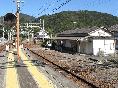 紀伊路でこんな小さな駅もしっかり訪れられたことが、なぜかうれしい。玄関を太陽が輝かし、モルタルの白塗りを輝かしている。背中はそれで熱さを感じていた。