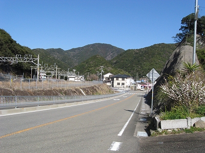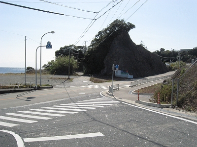 丘から下りる四十二号の脇に長い巨岩がつづき、巻道の旧道もあっておもしろかった。国道も滑らかに通しているようで、こうも牙を剥かれているところからすると江角の地形もやはり岬めいたものを保有しているんだなと思う。