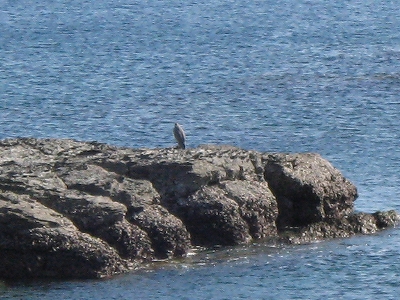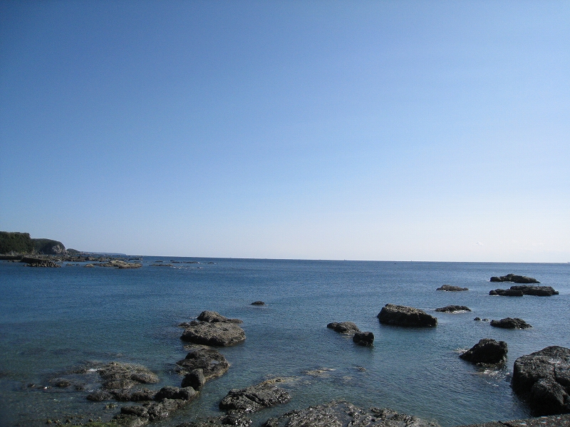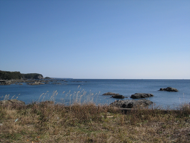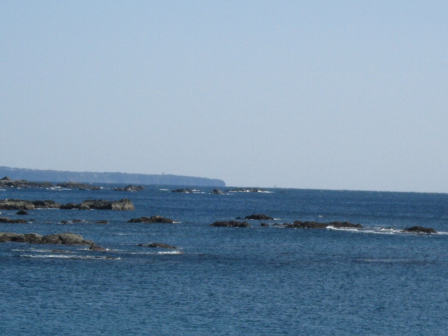 海に向かうと青空の中、猛然と冷たい風が吹き付けてきて苦笑した。あったかいんだかさむいんだか。でも気持ちいい! 入り江は平らで静か、沿岸ずっと遠くまで大洋にぽつぽつ岩が転がっていて、これは遊び尽きないと思った。近くの岩にはアオサのような緑藻がついていて、久しぶりに磯焼けでない、みどりの磯を賞美する。
